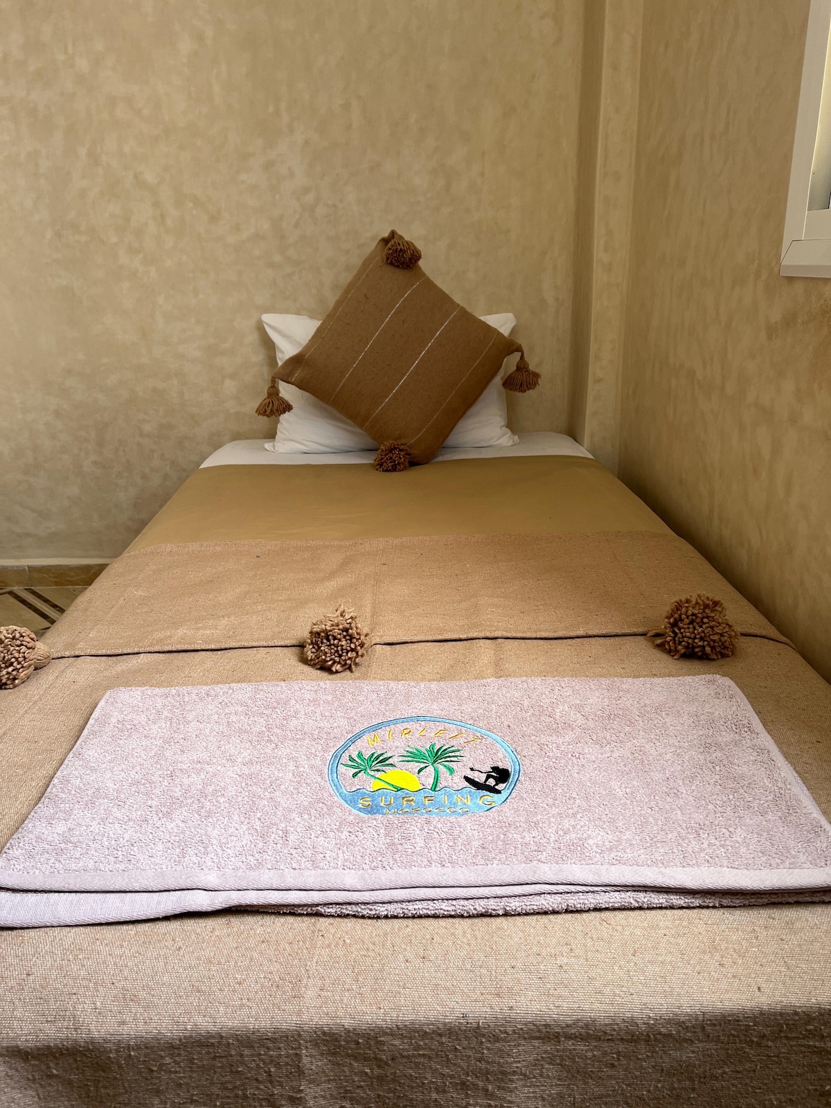 Welcome to World of Waves, our cozy surf & yoga boutique hotel right on the beach in Taghazout. We offer seven charming double or triple rooms, all with stunning sea views. A delicious breakfast is included and served each morning on our sunny terrace. We offer professional surf lessons for both beginners and advanced surfers, as well as daily yoga sessions on our ocean-view terrace. Please note that these activities are not included in the room rate and come at an extra cost.