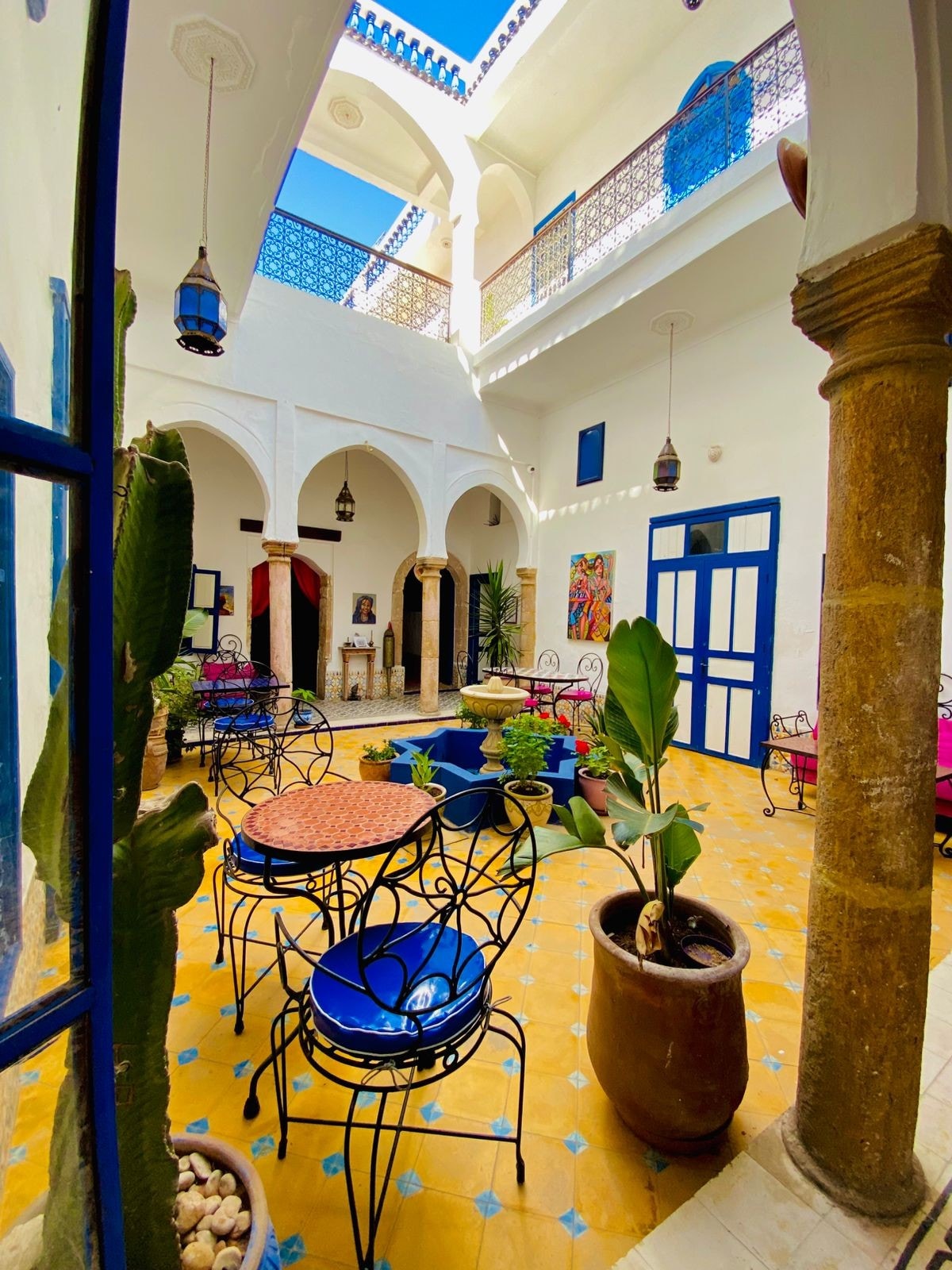 Notre Riad se distingue par sa vue imprenable sur la mer offrant des couchers de soleil inoubliables et son ambiance alliant tradition et modernité. Chaque détail, de l'architecture à la décoration intérieure, reflète l'essence du Maroc offrant une expérience authentique et inoubliable à chaque visiteur. Que ce soit pour se régaler de délices culinaires marocains raffiné ou explorer les souks animés de la médina à proximité, notre Riad offre une expérience unique .