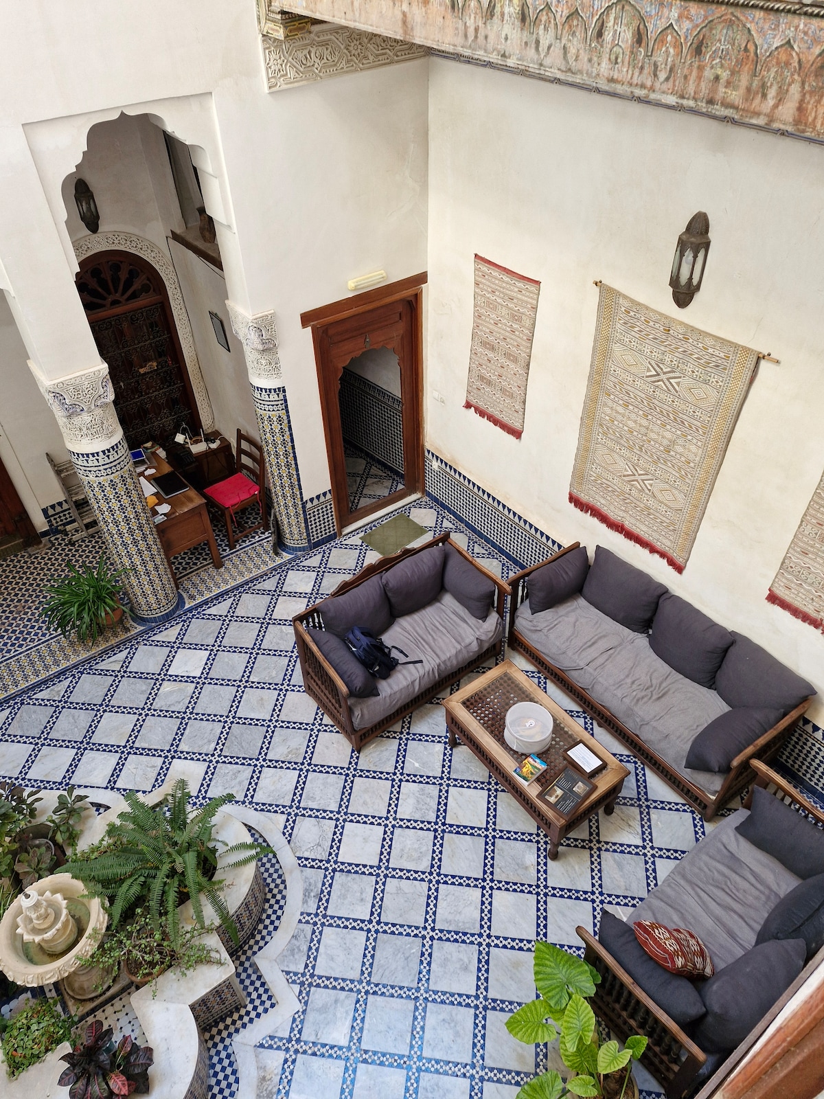 A small stylish Dar in the heart of the old medina, minutes from the Karaouine Mosque, henna souk and culturally important sites. There are two outdoor terraces, the upper terrace having great views across the medina and hills beyond. Downstairs there is a dinning area, kitchen and lounge. This area is full of antique shops and artisanal workers. You will be immersed in an ancient city & it’s way of life. A simple DIY breakfast of offered. More photos on Insta: houseoffigsfes