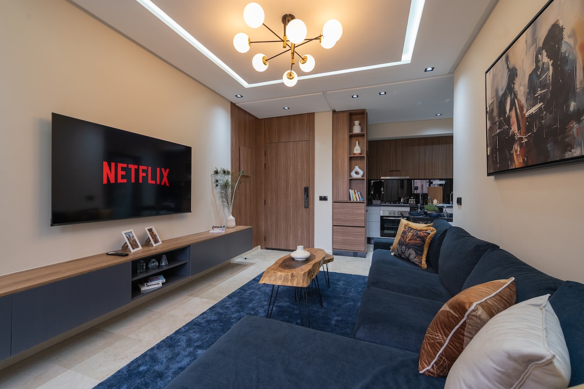 Séjournez en plein cœur de Marrakech dans notre appartement 2 chambres et 2 salles de bain. Profitez d'Une literie Simmons haut de gamme, WiFi haut débit (fibre optique) et d'une décoration moderne avec un bassin privé. Cuisine entièrement équipée, baignoire élégante, et douche italienne. À quelques pas de la place Jemaa el-Fna, du Plazza, et du Carré Eden. La piscine n’est pas chauffée. NB: Les couples marocains non mariés ne sont pas autorisés.