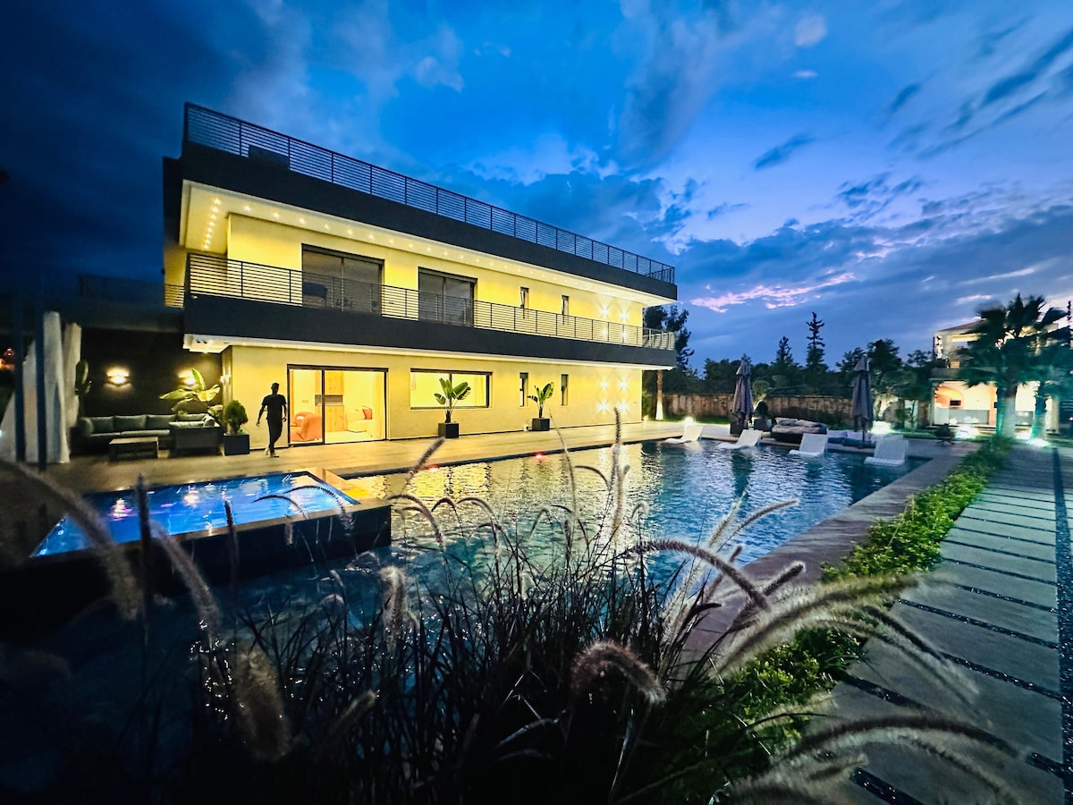 Somptueuse villa au milieu d’un jardin aménagé de 3000 m² 4 suites élégantes chacune dotées de salle de bains privative, dressing,tv climatisation et feu ouvert. Grand séjour lumineux ouvrant sur la piscine et le jardin, cuisine équipée, salle de sport et terrasses offrant une vue imprenable sur l’Atlas Piscine, espace barbecue et coin repas extérieur pour des moments inoubliables. Propreté impeccable Linge propre (⚠️pour les couples marocains: certificat de mariage obligatoire ).
