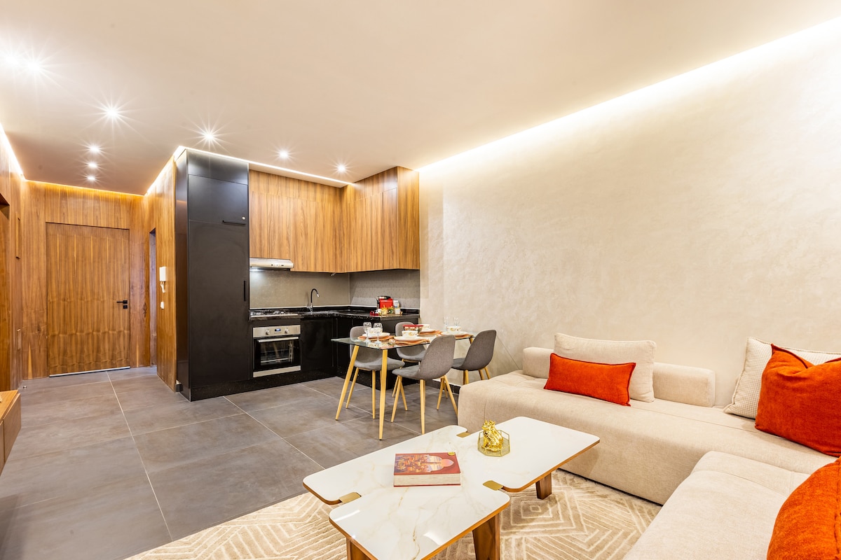 ✨Families & Marrakech - Elegance, space, and serenity Designed for families seeking comfort and refinement, this spacious apartment offers a chic and welcoming atmosphere. The bright living room invites shared moments, the elegant bedroom ensures peaceful nights, and the functional dining area makes everyday life with children easier. Located in a quiet neighborhood, this fully equipped apartment is a true premium haven for relaxing and discovering Marrakech at your own pace.