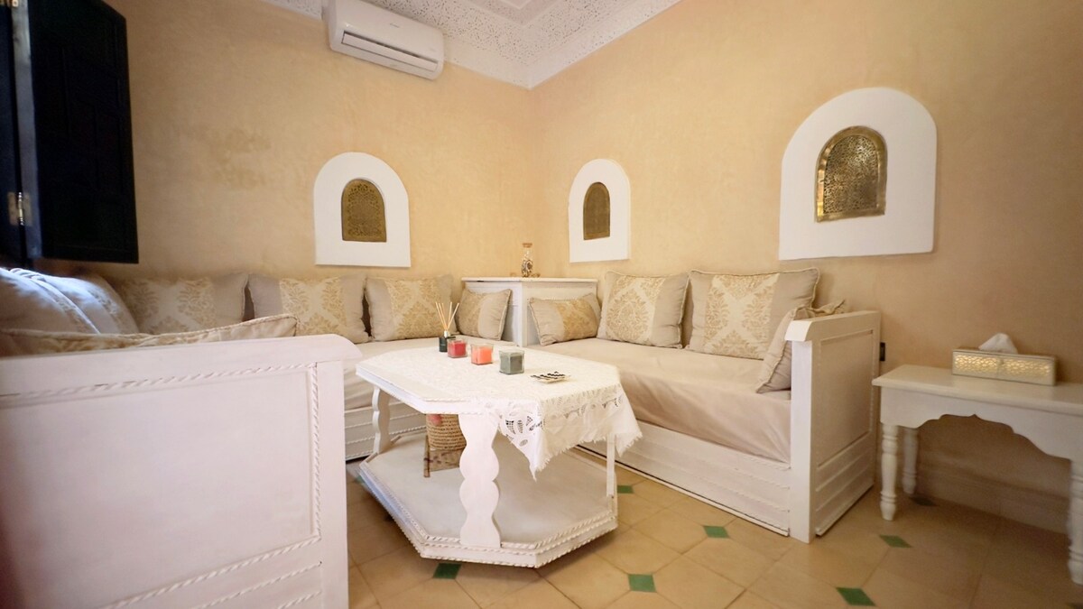 🕌 Welcome to Bliss Riad — a peaceful hideaway in the heart of Marrakech’s historic Medina. You'll enjoy one of 3 unique Executive Rooms — each offering a soulful ambiance, with touches like sacred silence, ancestral design, and calming views that nurture inner peace. Rich in Moroccan character, these elegant spaces offer a serene and spiritual escape. Relax in the patio, rooftop terrace, plunge pool, or Pure Bliss Spa — the perfect retreat after exploring Marrakech’s vibrant souks and culture.