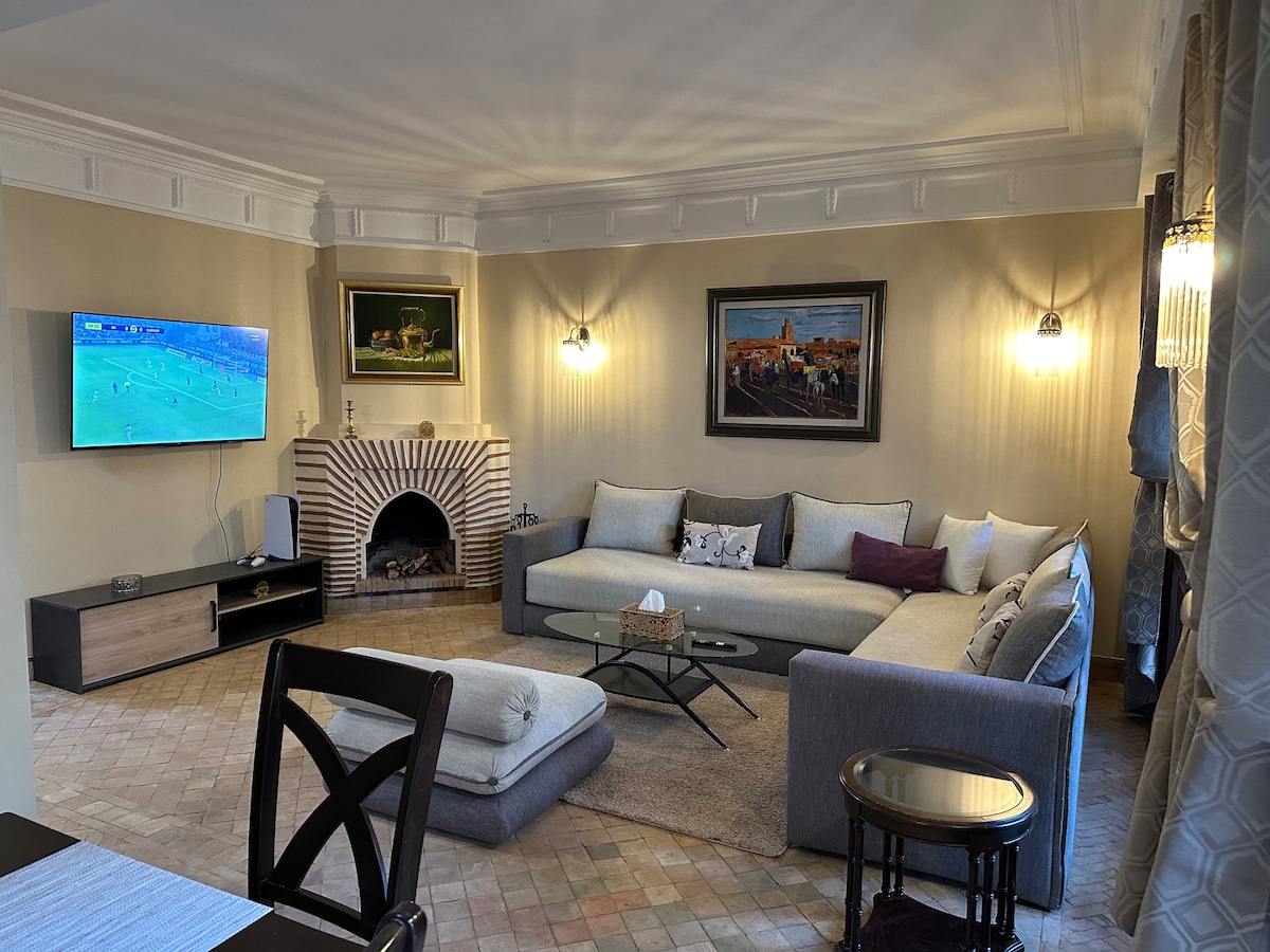 Discover this superb high-end apartment, inspired by the traditional Riad style, with two spacious and beautifully furnished private terraces. Ideally located in the heart of Marrakech, just a 5-minute walk from the Majorelle Garden and the Yves Saint Laurent Museum. Nestled in a quiet and charming street lined with luxury villas and elegant buildings, this property perfectly blends Moroccan architectural authenticity with modern comfort — in one of the city’s most sought-after neighborhoods.