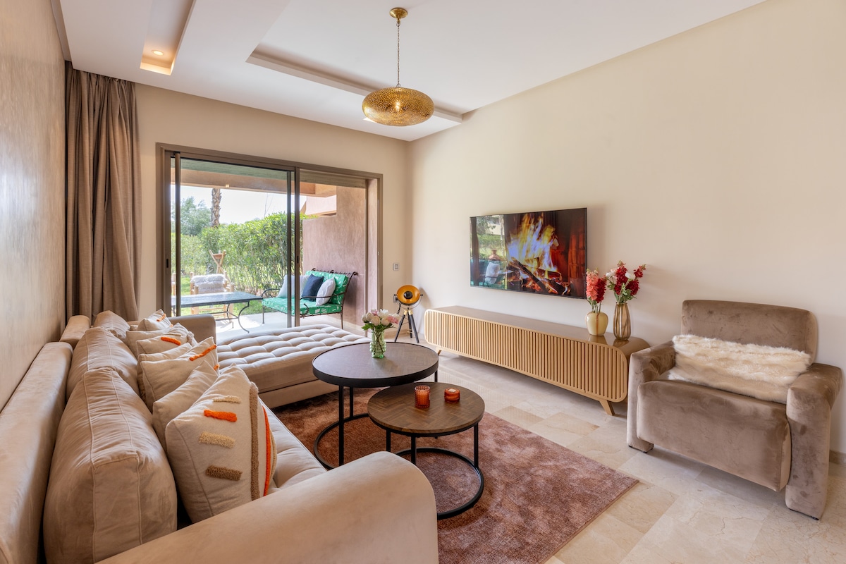 Step into the luxurious 3BR 3.5Bath villa in the premier Samanah Golf Club! It offers a relaxing getaway at the professional 18-hole course close to many exciting Marrakech attractions and historical landmarks. The stylish design, breathtaking garden, and rich amenity list will leave you in awe. ✔ Scenic Views ✔ Daily Housekeeping + Chef Services ✔ 3 Bedrooms + Ensuite Baths ✔ Comfortable Living Area ✔ Full Kitchen ✔ Garden (Pool, Pergola, Lawn) ✔ High-Speed Wi-Fi ✔ Parking See more below!