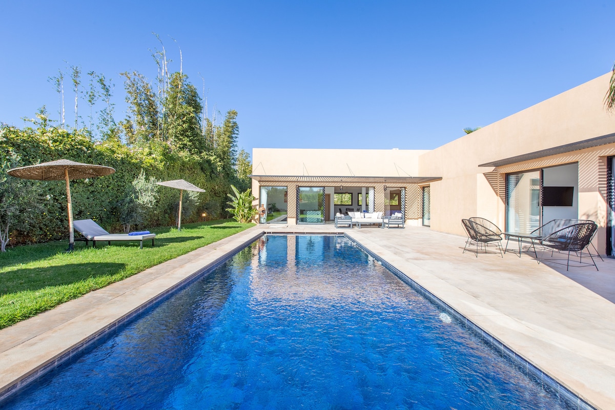 Faites une expérience hors du temps, dans cette magnifique maison marocaine traditionnelle avec sa piscine et son jardin privatif. Idéale pour la famille ou des amis, elle vous permettra de vous détendre dans un cadre élégant et épuré. Elle a été construite en 2010 par un architecte reconnu à Marrakech Un jardin privatif de 650m2, et un beau verger de 3000m2 Terrasse- Toit avec vue sur Atlas Très grande piscine à débordement 14x6m sans vis à vis équipé d Internet et TV satellite ,acces Netflix