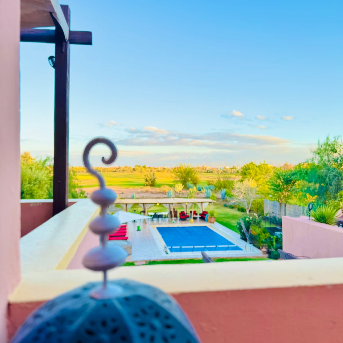 Bienvenue dans notre charmante villa au cœur de Marrakech, en première ligne de golf. À seulement 7 minutes de la place Jemaa el-Fna, 10 minutes de Guéliz et à 5 minutes de l'aéroport, découvrez le luxe de notre villa avec service de femme de ménage et cuisinière inclus dans la location. Profitez également de notre rooftop offrant une vue magnifique sur l'Atlas et les magnifiques couchers de soleil. Détendez-vous dans notre piscine privée, sans vis-à-vis, et explorez les charmes de Marrakech.