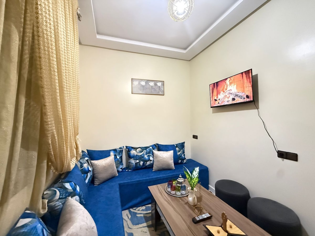 Perfect for families, couples, or groups up to 4 guests max. Free on-site parking inside the building safe, convenient, and perfect for guests with a car. Well-kept apartment with 2 bedrooms, cozy living room, equipped kitchen, large bathroom, and Wi-Fi. Shops, pharmacy, restaurants, and BIM supermarket just downstairs. Just 15 min from the airport, within walking distance to the medina & CTM, and 10 min to Aïn Asserdoun waterfalls by a taxi or a car. .