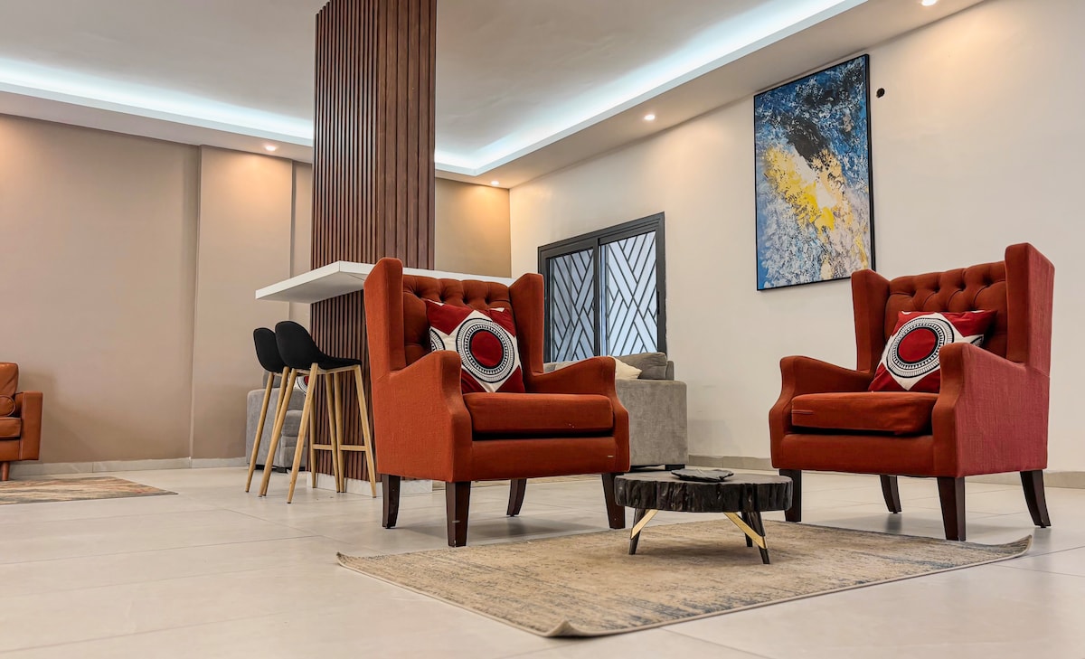 Séjournez dans un appartement moderne et elegant situé au coeur des Almadies, juste en face de l’Hôtel BOMA. Idéal pour les voyageurs en quête de confort et de tranquillité, cet appartement propose une Wi-Fi haut débit, une Smart TV et une cuisine entièrement équipée. L’immeuble offre une sécurité 24h/7, une salle de sport, un grand salon commun, un ascenseur ainsi qu'un parking gratuit. Profitez également de nos services exclusifs : Transfert à l'aéroport & Location de voiture.