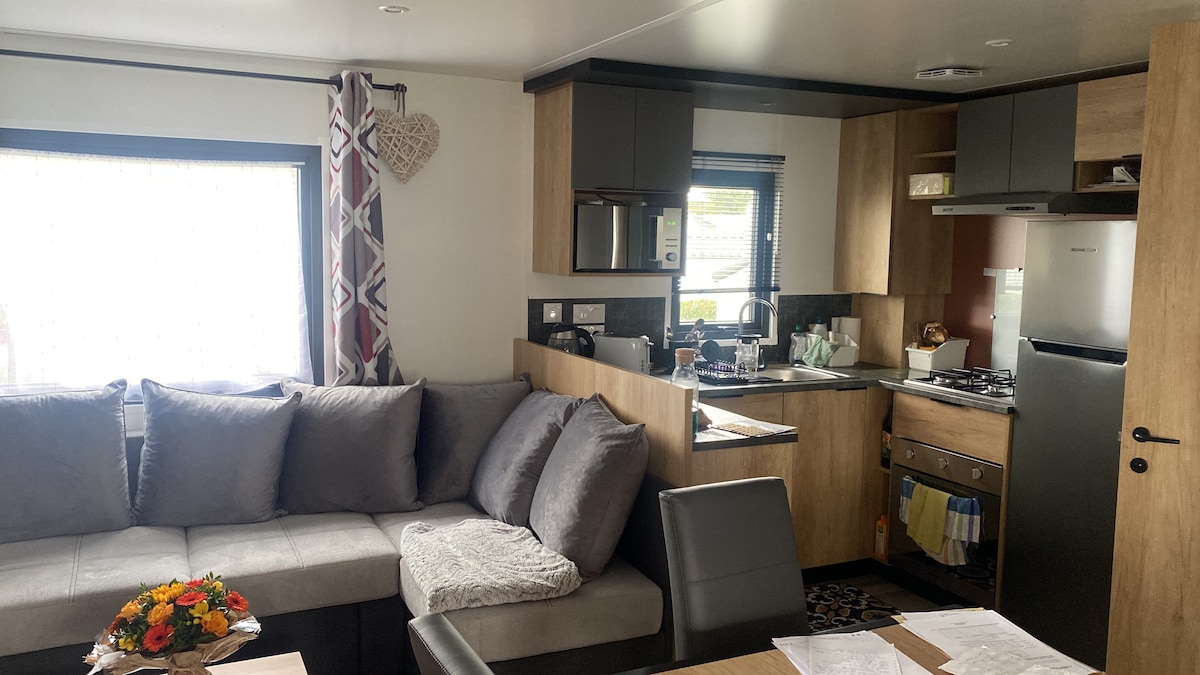 Chalet très comfortable même en hiver dans un camping à 800 mètres de la mer Accéder aux plages par un petit sentier pédestre Proche du cimetière anglais pour un peu d’histoire La piscine est ouverte du 15 avril au 21 septembre elle est composé de 3 toboggans et 3 piscines Logement non accessible PMR