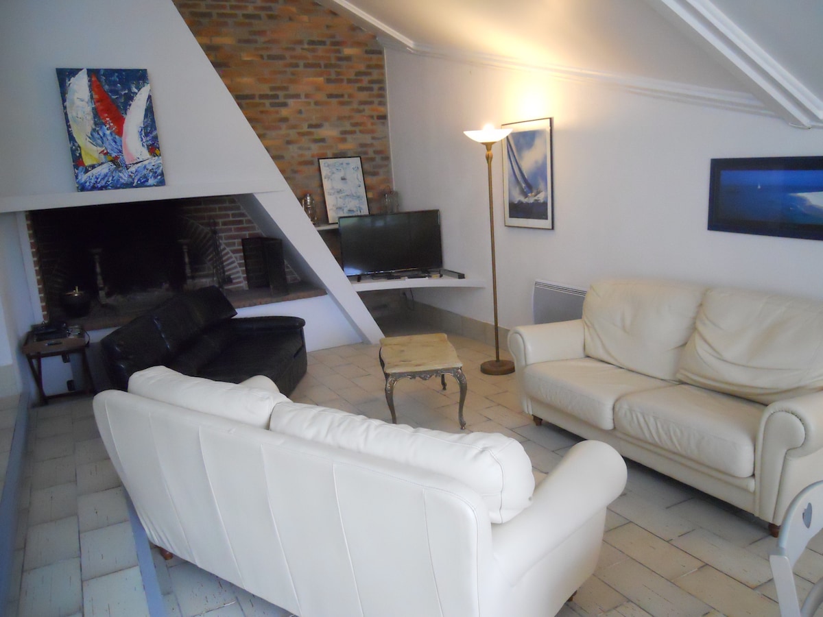 MAISON DE CHARME VUE MER à 50 mètres de la plage Et 200 mètres de l'école de voile 4* GDF Vue mer de toutes les fenêtres ! Jardin 200 m2 aménagé avec SPA 4 vtt disponibles et 2 raquettes (tennis à 600 mètres) 1 chambre BALNEO Entièrement équipée avec de nombreux ustensiles de cuisine Places de stationnement devant la maison Accès plage 50 mètre à pied TV, WIFI FIBRE, ENCEINTE CONNECTEE, LAVE LINGE, SECHE LINGE logement Espace bureau, console jeux vidéo arcades. Détente familiale totale !