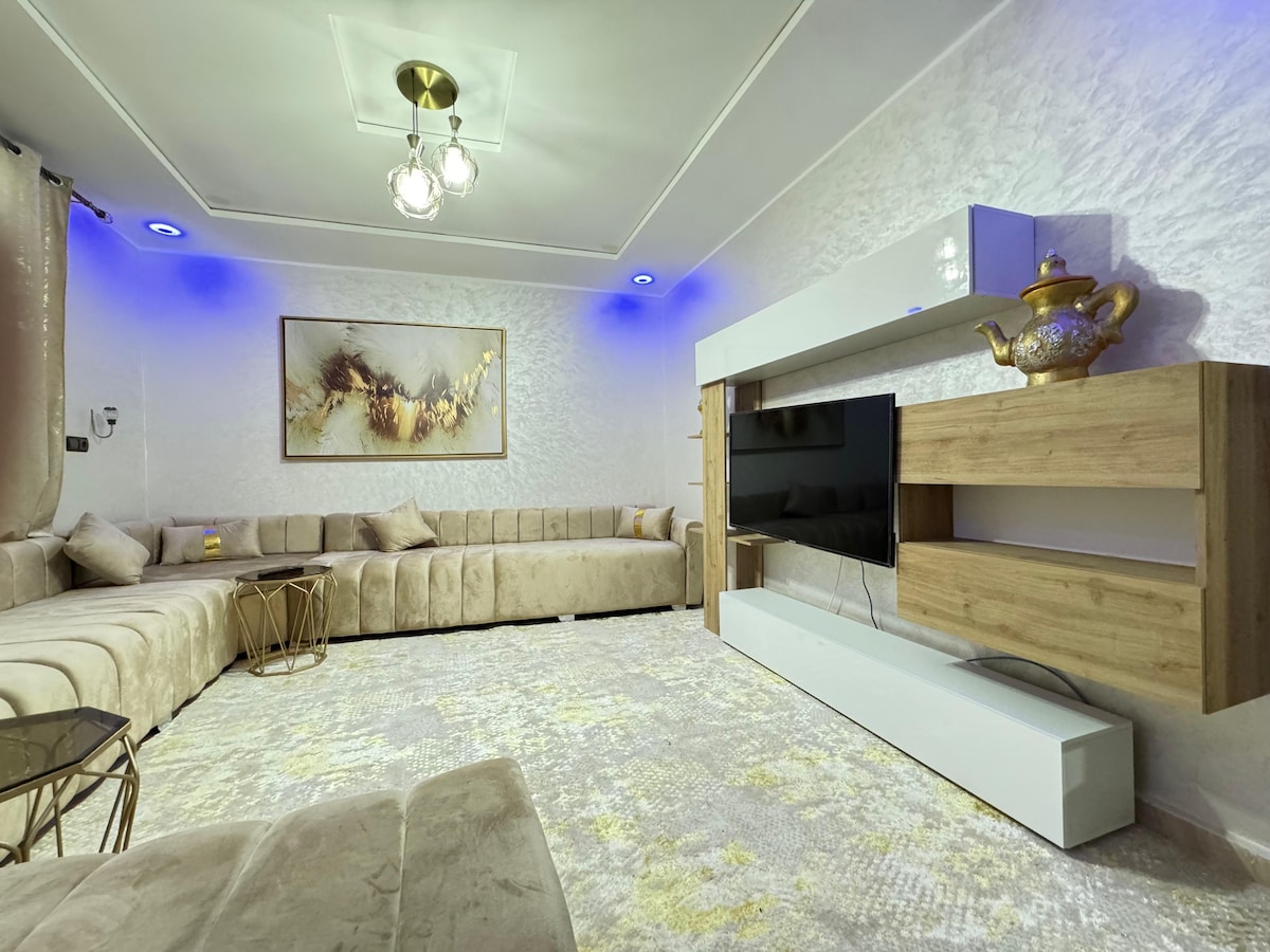 Bienvenue dans ce spacieu Appartement de 200 m² située au 1er étage à quelques pas du centre-ville et du McDonald's d’Oujda. 💤 3 grandes chambres 🛋️ 2 salons 🍽️ Cuisine entièrement équipée 🛁 Salle de bain avec jacuzzi 📶 Wi-Fi fibre optique 200 Mbps 🚫 Fêtes, alcool et groupes d’amis strictement interdits.