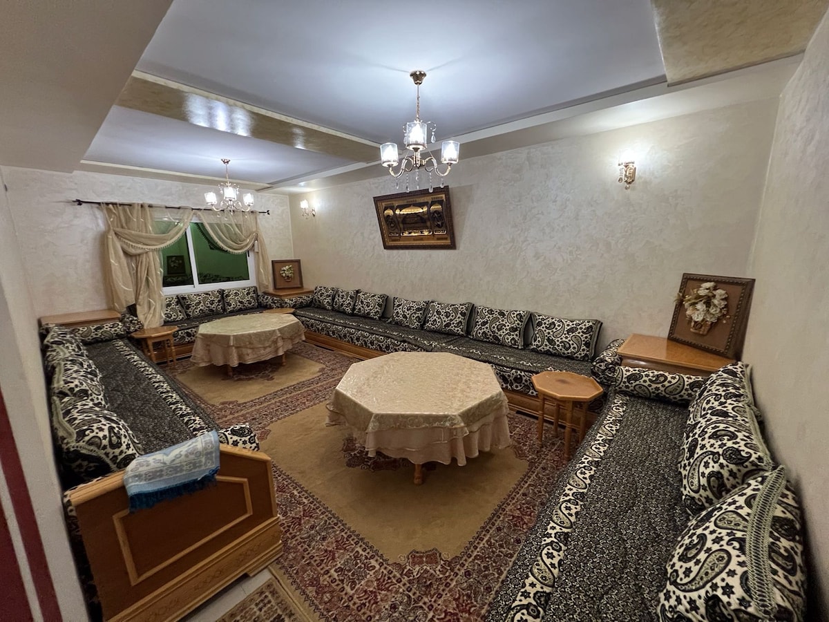 Ce logement familial est proche de tous les sites et commodités d'oujda, sa proximité du centre-ville vous permet de vous déplacer même à pied dans tout les endroits animés d'Oujda. Si vous êtes une famille nombreuses ou deux familles, possibilité de réserver selon disponibilité l'appartement mitoyen d'une capacité de 6 locataires aussi, contactez-nous pour plus d'informations.