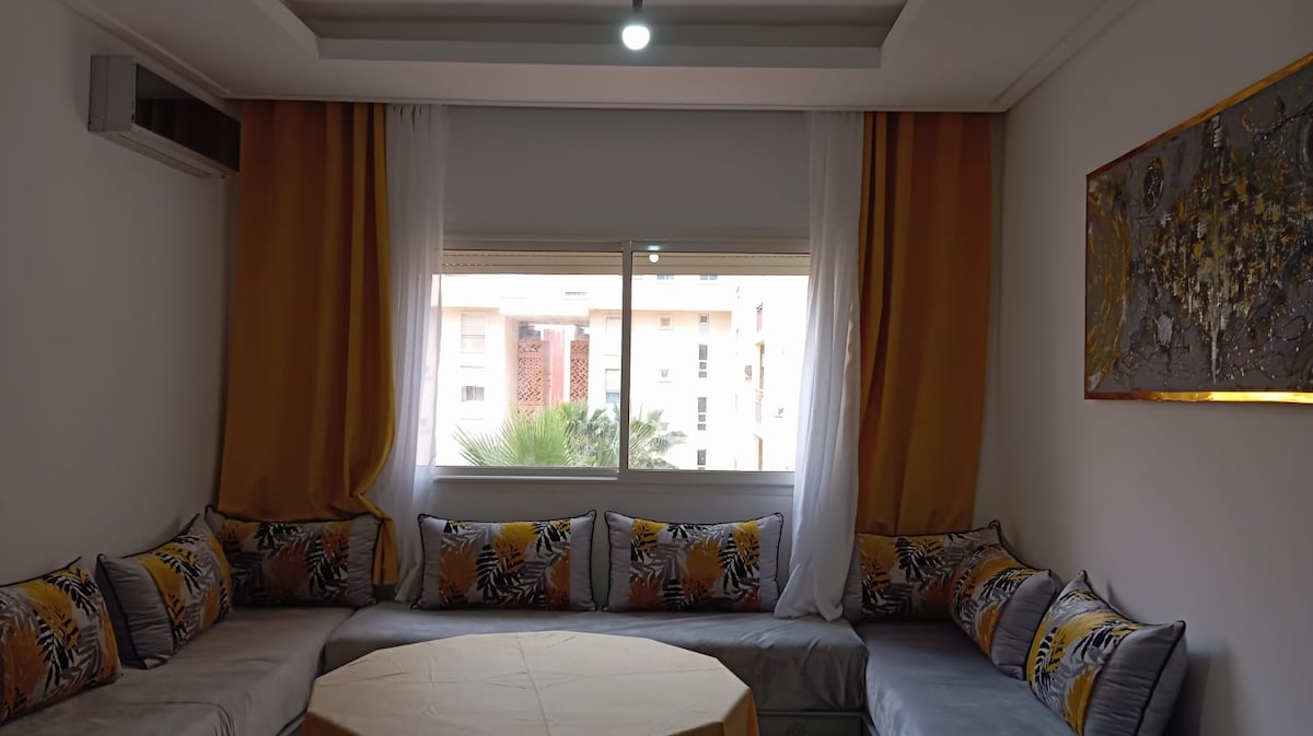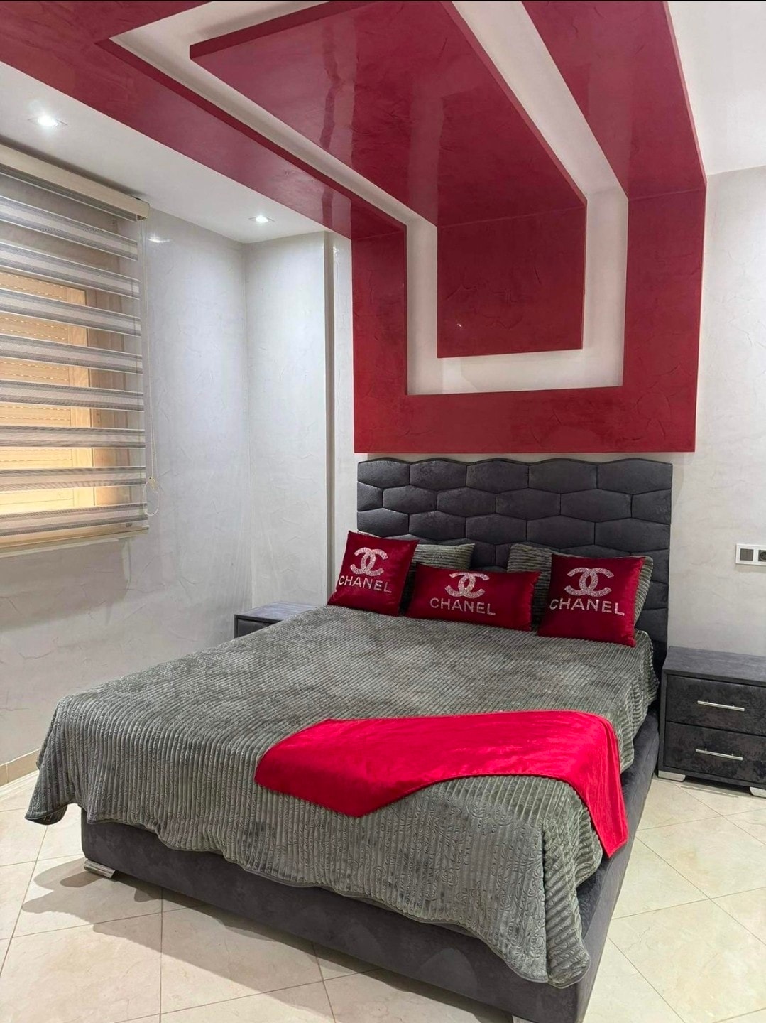 Appartement de 95 m², entièrement meublé et équipé, offrant des prestations de haut standing. Emplacement idéal : situé au cœur du nouveau centre d'Oujda, à proximité immédiate du CHU, de la Wilaya.Taxis, cafés et un guichet automatique sont accessibles au pied de l'immeuble. Logement neuf : cuisine équipée, IPTV avec Netflix, fibre optique , cafetière , climatisation... Résidence calme avec un stationnement gratuit disponible en sous-sol. Les couple marocains non mariée ne sont pas acceptés