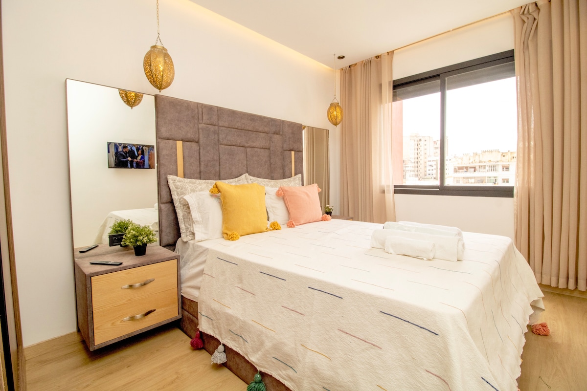 - Welcome to our scandinavian style apparamtnet with super king size bed in the center of Casablanca, decorated with love and located in one of the main neighborhoods of Casablanca where everything is nearby. Coffee shops, restaurants, supermarkets Our space is Ideal for business or leisure, our apartment is your perfect base from which to explore the bustling heart of the city,