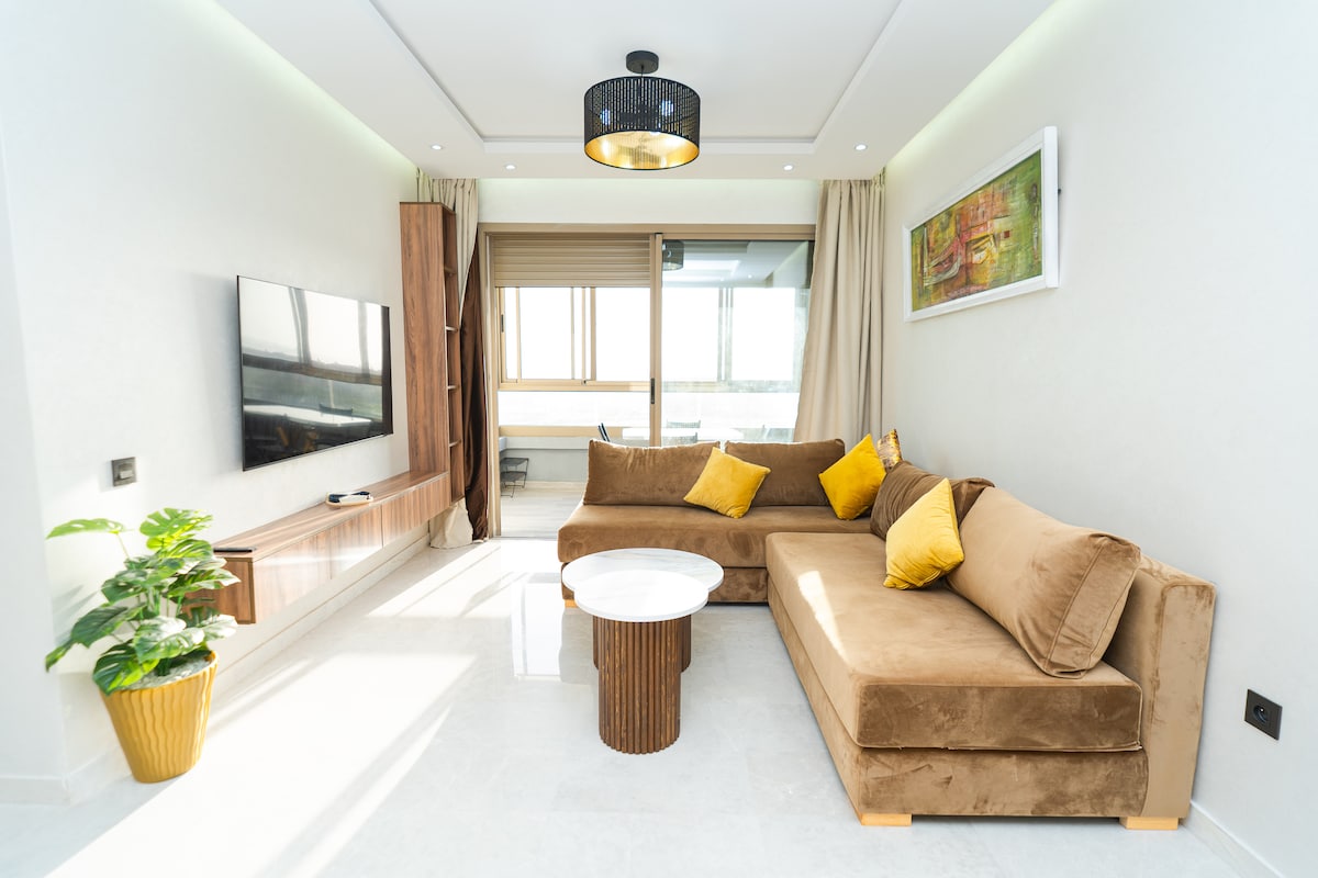 Unwind in our luxurious studio, where comfort meets convenience in one of Casablanca’s most desirable neighborhoods. Featuring elegant design, a private gym, and a spacious balcony—perfect for your morning coffee or enjoying breathtaking evening views. With top restaurants, shops, and must-see attractions just a short walk away, you'll have everything at your doorstep. Whether you're visiting for business or leisure, it's the ideal escape to relax and recharge.