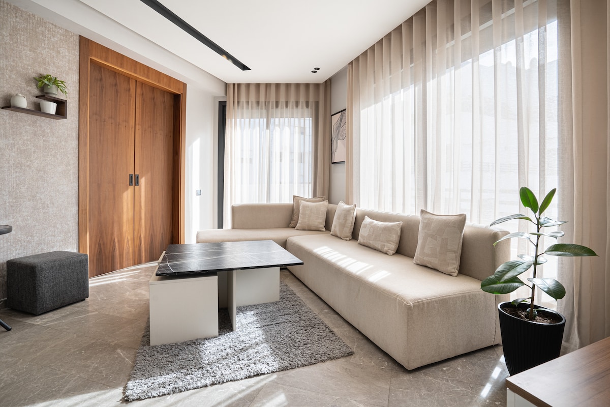 Butterfly 703 🦋, un havre de paix où l'élégance d'une résidence moderne s'allie au confort des hôtels 5* en plein cœur de Casablanca ! Relaxez-vous dans un salon spacieux au design moderne, équipé d'une Smart TV 55’ avec Netflix et IPTV pour des soirées de détente absolue. La chambre, véritable nid douillet, vous promet des nuits paisibles et réparatrices ☁️ Depuis votre balcon privé, admirez les splendides couchers de soleil sur la ville, rendant chaque moment de votre séjour inoubliable ! ✨