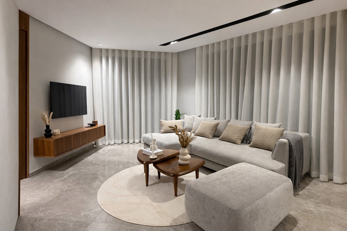 Perla 403 💎 , un havre de paix où l'élégance d'une résidence moderne s'allie au confort des hôtels 5* en plein cœur de Casablanca ! Relaxez-vous dans un salon spacieux au design moderne, équipé d'une Smart TV 55’ avec Netflix et IPTV pour des soirées de détente absolue. La chambre, véritable nid douillet, vous promet des nuits paisibles et réparatrices ☁️ Depuis votre balcon privé, admirez les splendides couchers de soleil sur la ville, rendant chaque moment de votre séjour inoubliable ! ✨