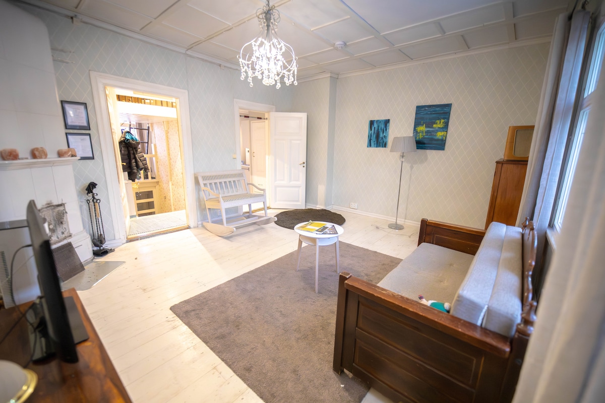 This unique, 100+ year old cottage is located in a quiet residential area just a few kilometers away from the city center. It is close to the highway E4. The next bus stop and a supermarket can be found in immediate vicinity. Bikes can be rented for an additional fee. The cottage is suitable for 2 people and offers a living/sleeping area, a fully equipped kitchen and a bathroom with shower and washing machine. The house can be heated with electrical heaters, a heat pump or a wood-burning oven.