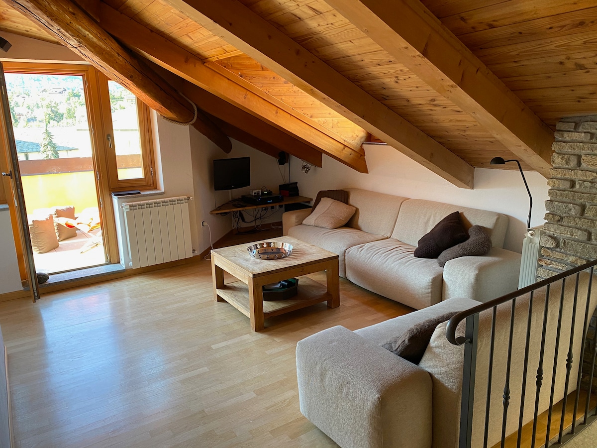 'La Mansarda' is a unique penthouse of 100m2. It is located in an authentic Italian palazzo under the wooden beams of the original roof. A lovely and spacious balcony overlooks Oulx and the mountains. Conveniently located at the train station and at 5km of the ski slopes, it is the perfect getaway place to enjoy Piemonte in winter and in summer. Visitors can also make use of a large basement room with a table tennis table, but where also skis, bicycles, etc can be safely stored.