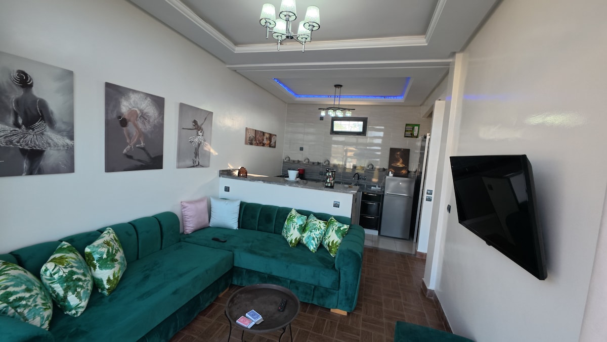 Bienvenidos en nuestro Airbnb, aqui vais a sentir como en casa. piso bien comunicado en una zona tranquila relajante rodeada de restaurantes,cafetrias,bancos,supermercados,sokos tradicionales parques.mezquitas,todo que necesitais mas los abundantes medios de transporte taxis, buses. exelente para familias,viajeros. esta a solo 6 min del Aeropuerto Mohamed Vy del estacion de tren y a10 min de berchid y a 25 min de Casablanca. Bienvenidos, Marhaba, مرحبا