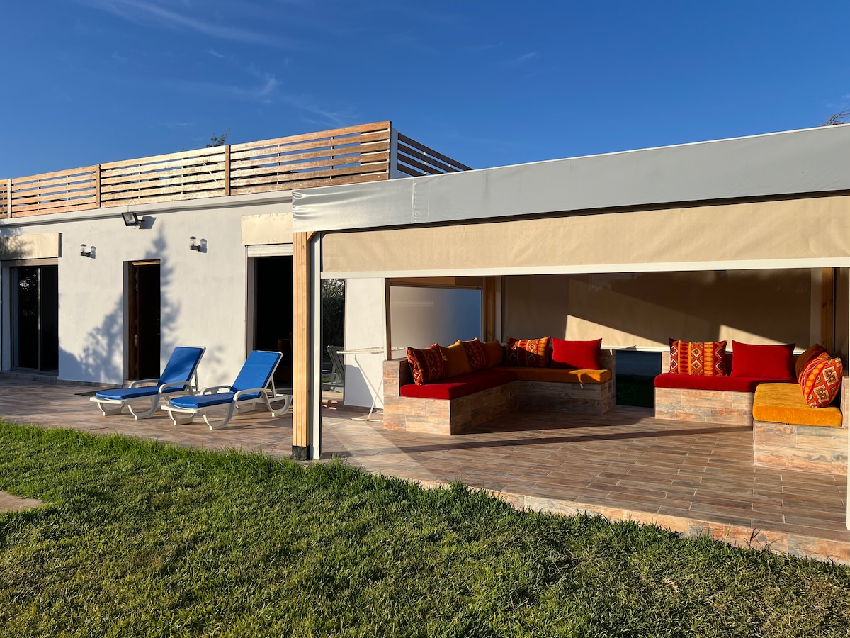Très belle maison de campagne de plain-pied construite en pierre et matériaux naturels. En totale intimité, profitez d'une piscine privée et d'une terrasse entourée d'oliviers. Située à proximité de Settat, de la rivière Oum Errabiâ, de la Kasba de Boualaouan et à moins de 1h10 de la mer, elle est parfaite pour une escapade familiale paisible à la campagne. À 10 min, le village d'Oulad-Said offre toutes les commodités.