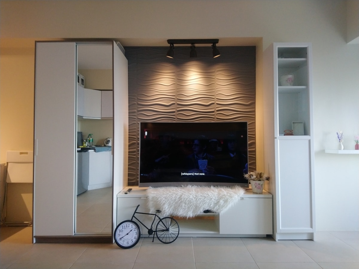 Studio type condo unit located just behind Ayala Mall Serin and Fora Mall, 6 min walk to Our Lady of Lourdes Church, and 5 min walk to Pamana Restaurant and Tsokolateria. Famous Tagaytay spots are accessible by public transportation. UPDATE: Upgraded wifi connection (now Globe broadband up to 35 Mbps) and with Air Purifer No swimming pool facility is available in Serin East yet. Please book only if you don't require swimming pool access. Thank you