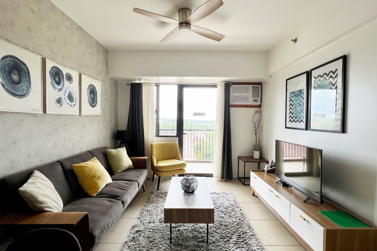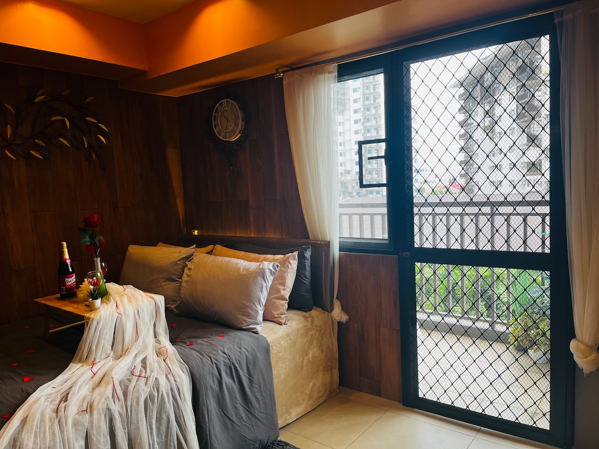 We want to share the tranquility of our space to other like minded people looking for a break from the fast paced city life. Our home is a 1 bedroom 50sqm unit with an expansive balcony - more spacious than others in the same price range. It's ideal for a couple or a family of 2 adults and 1 child. Use of swimming pool - see details provided in the listing description. Parking NOT included but can be provided for P250/night. Late check-in fee after 4PM. Simplicity. Peace. Uncomplicated.