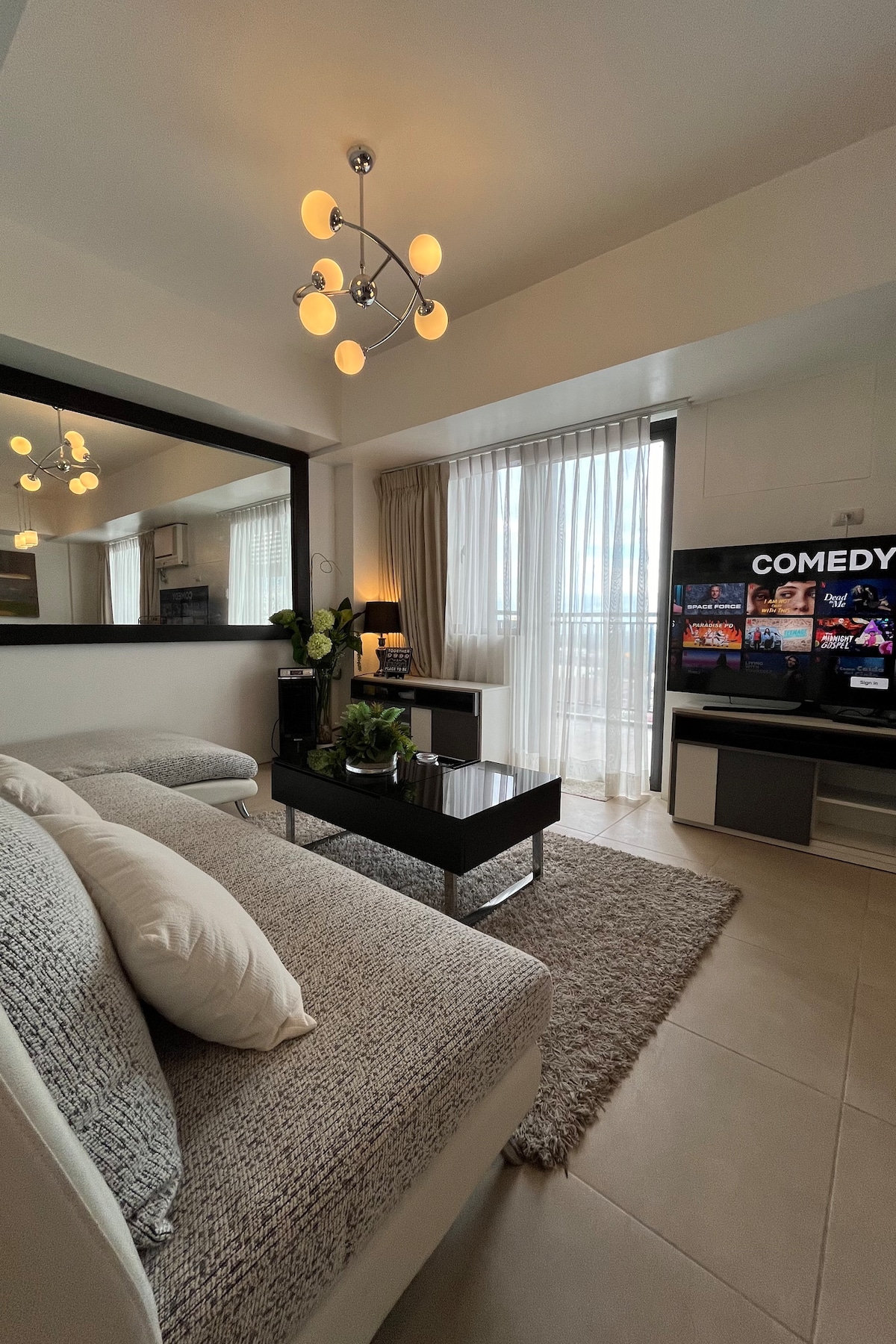 Hawaiian-inspired condo Located @ Serin East Condo just across Ayala Malls Serin! Ohana means "family" and Hale means "home" in Hawaiian culture. Our unit is designed to provide you with a warm and relaxing atmosphere that will make you feel right at home. We take pride in providing our guests with the ultimate experience of comfort! In addition, we offer a unique feature of a 100" Home Cinema experience that will let you enjoy your favorite movies with your loved ones like never before!