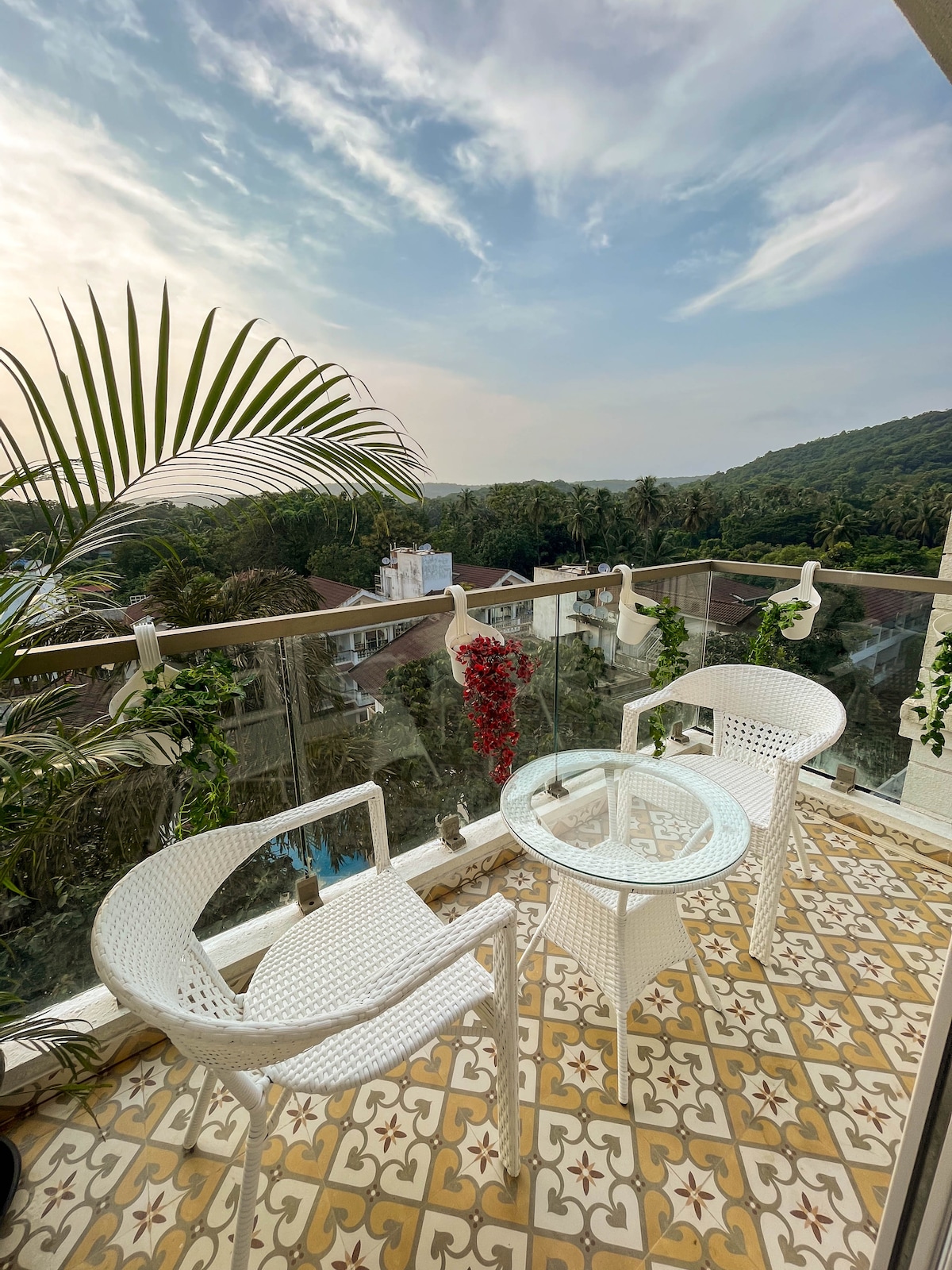 A hidden gem tucked away in Panjim's poshest zip code. Our 2BHK penthouse has a private terrace and is a short walk from Miramar beach. A Goan sanctuary surrounded by greenery; the open-plan, sprawling living room transforms into a chic space after sunset with designer ambient lighting. The famous promenade, grocery stores, and cafes are just a stroll away. Fontainhas & casinos are a short drive away. Enjoy high-speed WiFi if you’re working from home. PS: Look for peacocks in the morning!