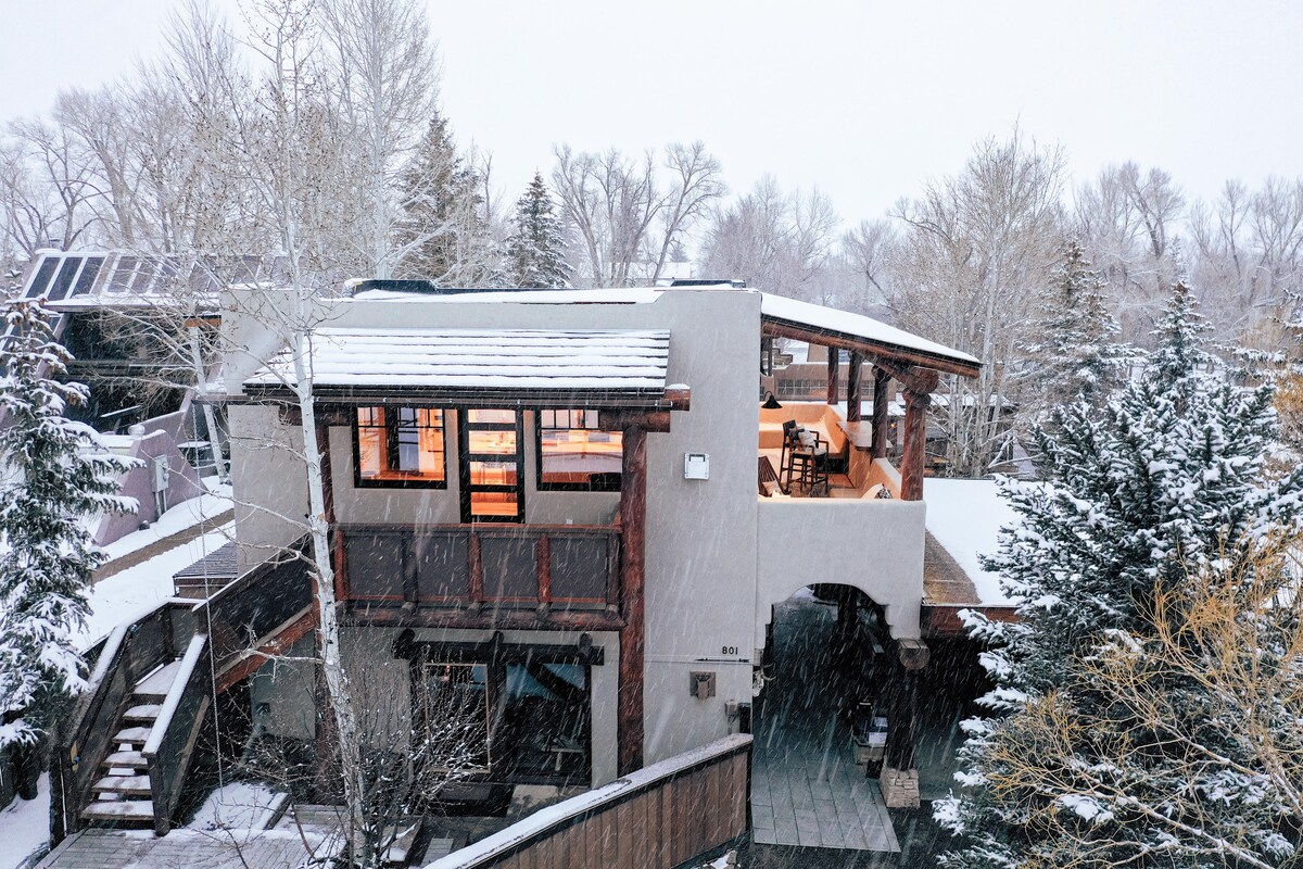 The Cimarron Residence features a one bedroom house with lofty ceilings and expansive views. Professionally hosted, the inspiring design infuses Southwestern-modern finishes making this luxury property ideal after a day filled with adventure. Centrally located, guests can walk a few short blocks to restaurants, town market and more. Complete with chefs kitchen, gas fireplace, flat screen tv, spacious bathroom, hot tub, expansive patio with heaters and fire pit. STR STR2021-12