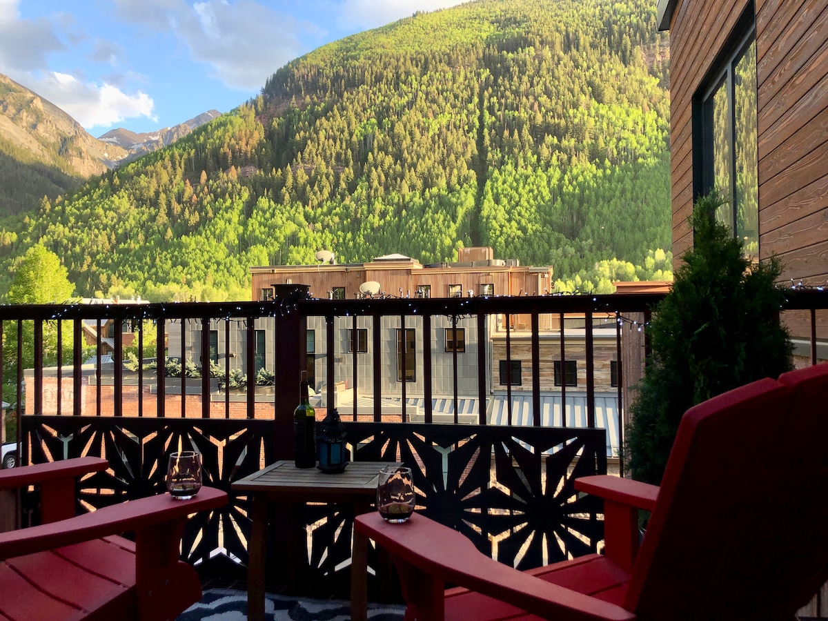 Sunny second floor (penthouse) one-bedroom historic main street condo with deck just steps away from restaurants, cafés, shops, skiing, hiking, and much more! This turn-of-the-century condo offers a comfortable and stylish retreat, ideal for couples looking to explore the charm of downtown Telluride and its many activities. As long-time locals of over 30 years who have had to relocate due to family health issues, we are excited to share our condo with fellow travelers who love Telluride!!
