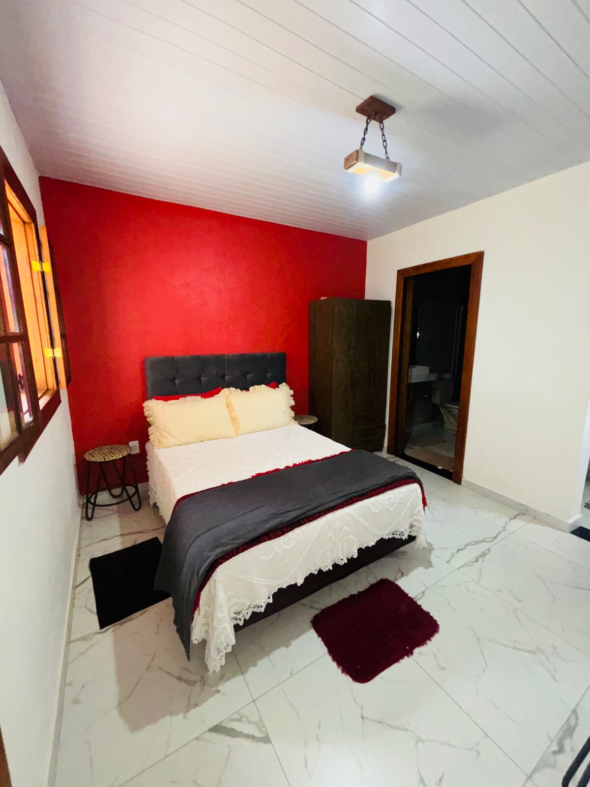 Suíte localizada na comunidade da chapada subdistrito de Lavras Novas, dentro do terreno da anfitriã Maria, está a 2 km de uma linda cachoeira. É um lugar bem tranquilo e agradável, ambiente familiar, para pessoas que querem disfrutar de um ambiente rustico confortável. A Suíte tem 50m² , dispõe de uma banheira de hidromassagem, TV, cama Queen Size, sofá cama, micro-ondas, uma mesa e frigobar. O café da manhã é servido na cozinha da anfitriã Maria e está incluído no valor da diária.