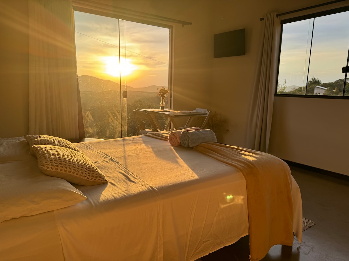 O Loft Asa Branca, localizado no Refúgio de Lavras, é um local romântico, perfeito para casais e amantes da natureza que buscam descanso e tranquilidade. Você pode admirar, direto da cama ou da hidromassagem, uma vista deslumbrante para um mar de montanhas e, com um pouco de sorte, avistar a Serra do Caparaó. Em dias nublados, o loft é envolvido por nuvens, proporcionando a sensação mágica de estar flutuando entre elas. À noite, um céu estrelado brinda os visitantes com um espetáculo incrível.