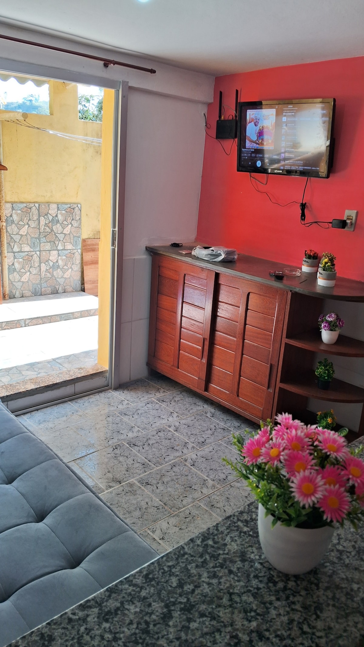 A charmosa kitnet fica a 10 minutos de caminhada da Praça Tiradentes e a 5 minutos de caminhada do Santuário de Nossa Senhora da Conceição, no bairro Antônio Dias. Fica localizada em um aconchegante e arborizado condomínio fechado no coração da cidade. Possui um quarto com cama de casal e smart TV, sala conjugada com cozinha, equipada com utensílios gerais para seu conforto. Além disso, possui um espaço exclusivo de lavanderia e varanda. Acesso à internet de alta velocidade (250 MB).