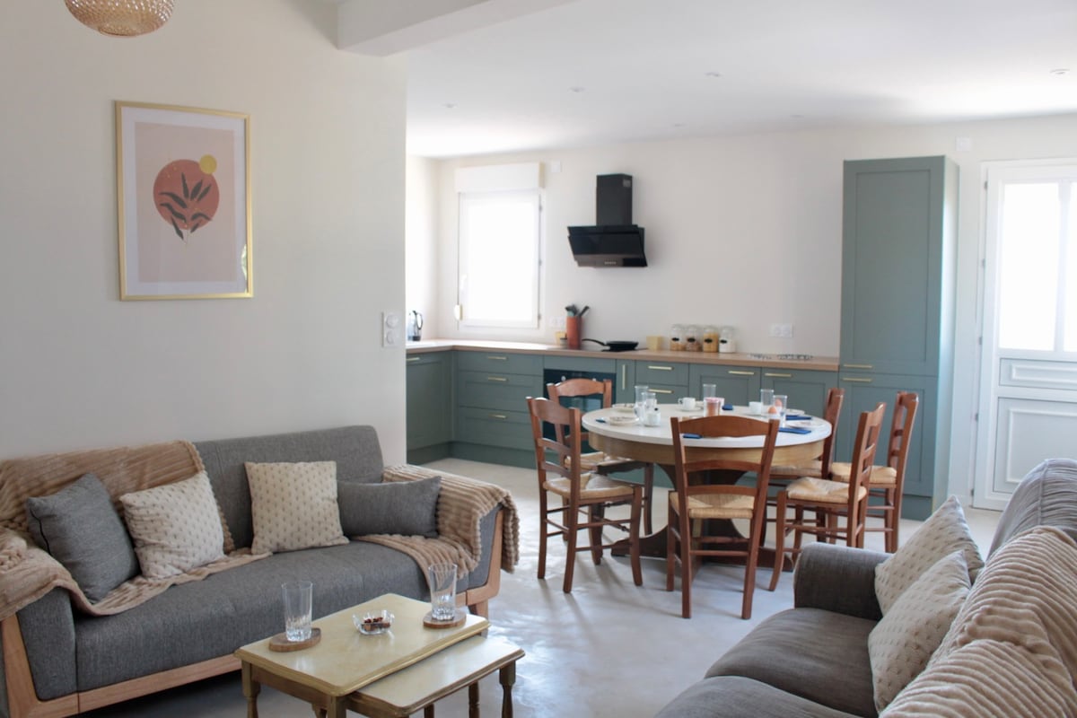 Bienvenue dans notre gîte chaleureux de 50 m², idéal pour une escapade à deux ou en famille. C'est un petit cocon que nous avons aménagé avec soin, pour que vous vous y sentiez comme chez vous. Que vous veniez pour vous reposer, vous reconnecter à la nature ou explorer les environs, vous trouverez ici calme confort et authenticité, dans un environnement paisible. Petit déjeuner en option Produits locaux sur place