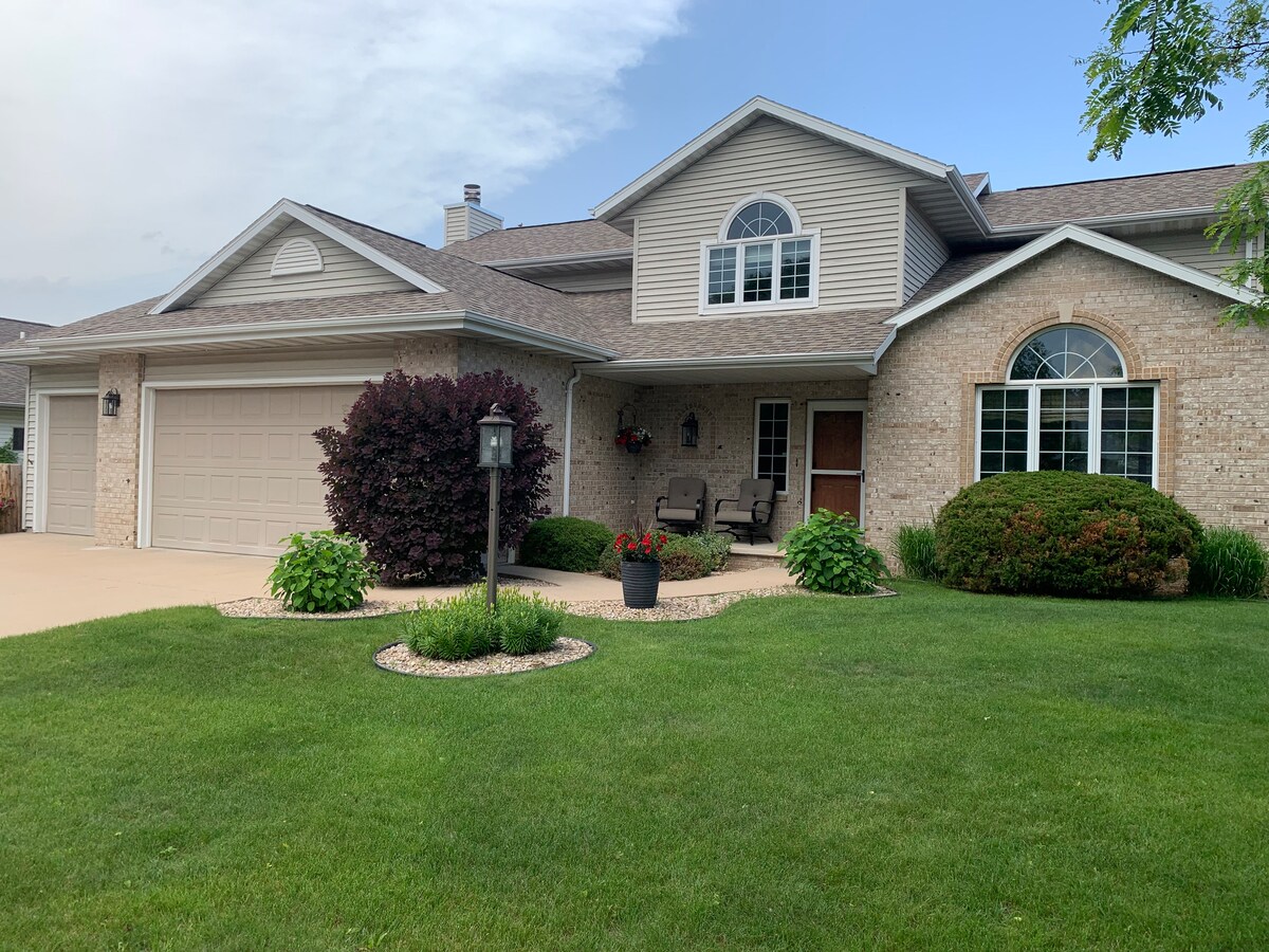 Relax and enjoy in a beautiful scenic home conveniently located in a quiet wooded neighborhood in Appleton. It has all the elements of being your get away from home. Nearly 3,000 sq. ft. Guests have access to all living areas, modern kitchen, full mason fireplace, vaulted ceilings, large deck and hot tub. Enjoy the backyard with a spacious deck, 7 person hot tub and outdoor fire pit. Five min. from Airport, Downtown, 25 min. to Lambeau and 20 min. to EAA. Includes coffee and breakfast.