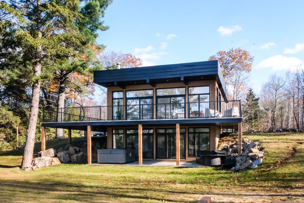 Escape to the heart of nature at this bright and spacious modern chalet, perfectly set on the peaceful banks of the Rivière Rouge. Located just 30 minutes from Mont-Tremblant and only a few minutes from town, it’s the ideal place to unwind with friends, enjoy quality time as a family, or host a relaxing team getaway. With a large spa, pickleball court, outdoor fireplace, and plenty of indoor games for rainy days, this retreat is built for comfort, connection, and fun—all year round.