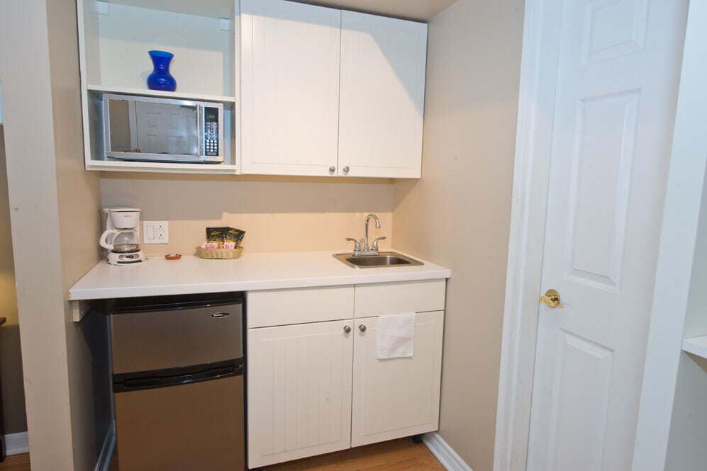 This room features 2 single beds, a private balcony, a kitchenette, a desk and chairs, and more! High-Speed Wi-Fi, Flat-Screen TV, Work Desk & Chair, 3-Piece Bathroom, Coffee Maker, Complimentary Toiletries, Glass Water Bottles, Balcony. Occupancy: 2 adults. Continental breakfast is $10 per person.