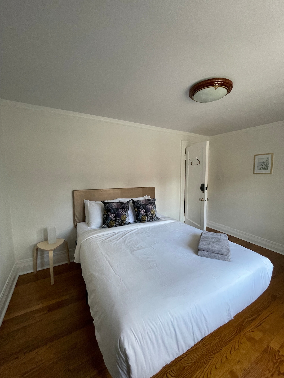 You won’t want to leave this charming, one-of-a-kind place. Private second floor room with a loft bed area with queen bed with en-suite bathroom (shower/toilet/sink) + balcony. Cotton linens and towels. 24 hr. Snack/breakfast station. K-cup coffee (caffeine + decaf.) and tea (herbal + black)maker plus minifridge are conveniently located in the room. Located in the centre of our city’s capital! The room has Maple floors, two dressers, hangers and workspace/dining table. Netflix and streaming