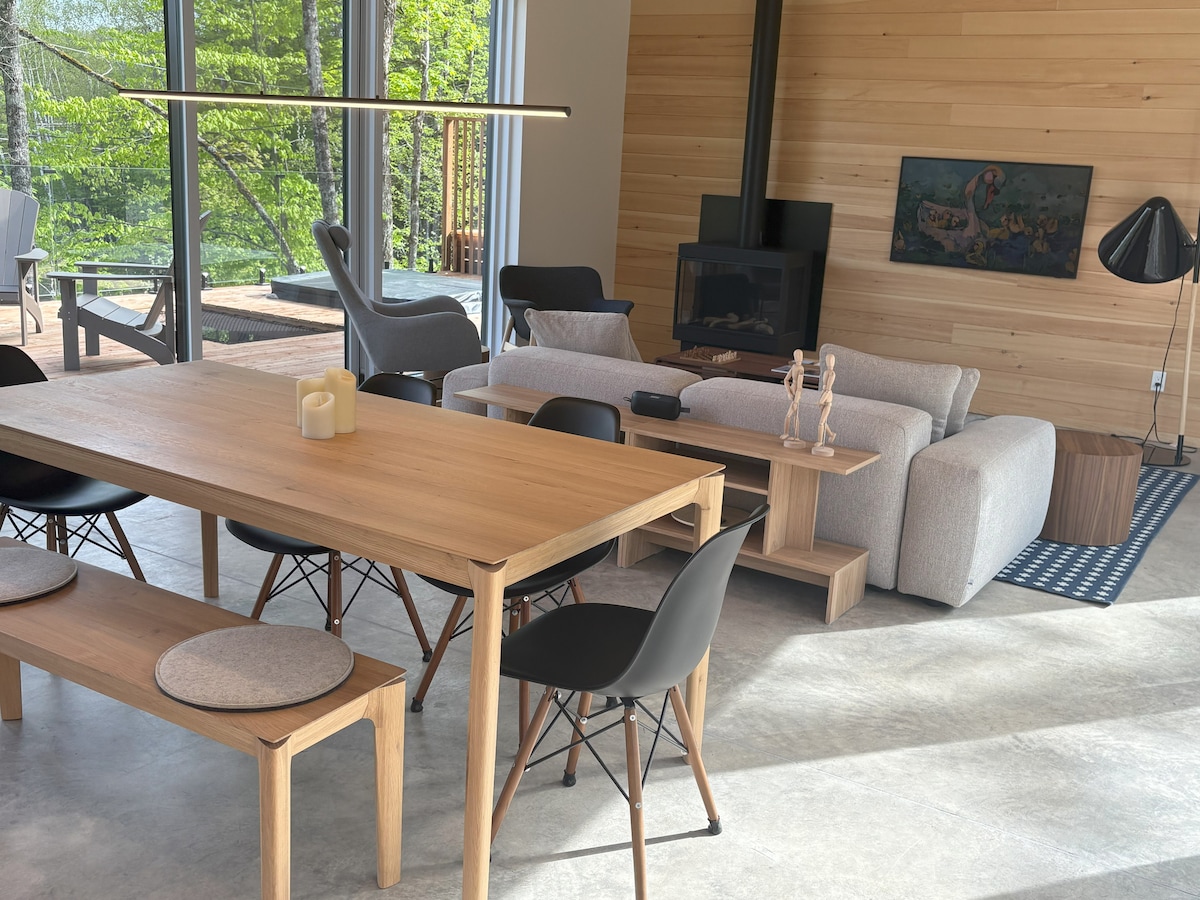 Welcome to WOLM scandi! Escape to our modern, luxurious chalet in the heart of the Laurentian forest. Relax in the hot tub or by the fireplace, take in amazing views of the Mont Tremblant mountains from our deck, and create unforgettable memories with your loved ones! Our pet-friendly family chalet is just minutes away from Mont Tremblant. Book now and experience the perfect blend of comfort and adventure.