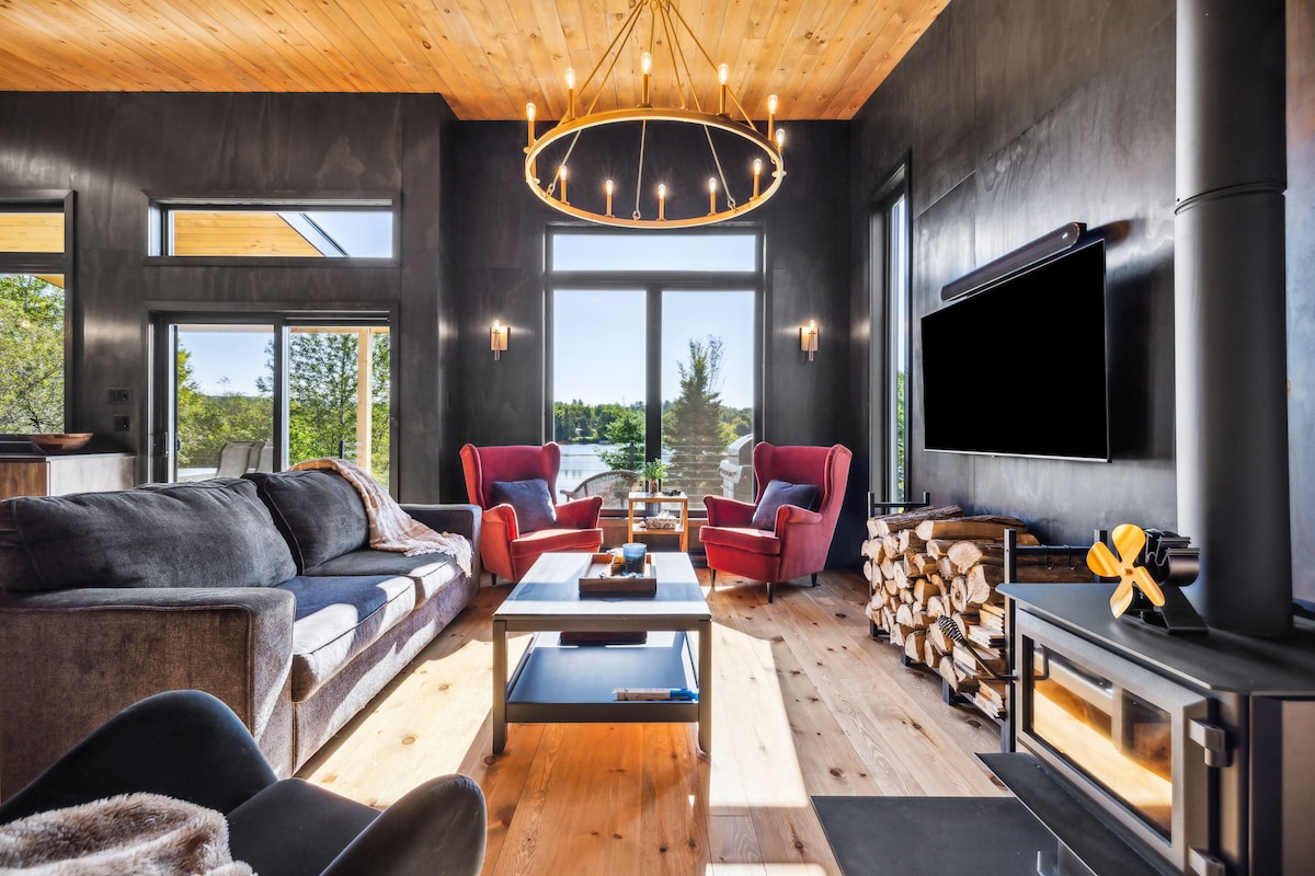 Welcome to our carbon neutral Waterfront Oasis! Come for luxury & comfort & stay for the amazing sunsets. Whether you’re here to unwind with a loved one, celebrate an occasion, or gather w friends, we’re confident you’ll find everything here. Looking for a spa weekend? Our barrel sauna and 5 person hot tub have incredible views of the Ottawa river. Looking for some R&R? Minus the palm trees, you’ll feel like you’re in the Caribbean while sitting at our beach front bar w views of our sandy beach.