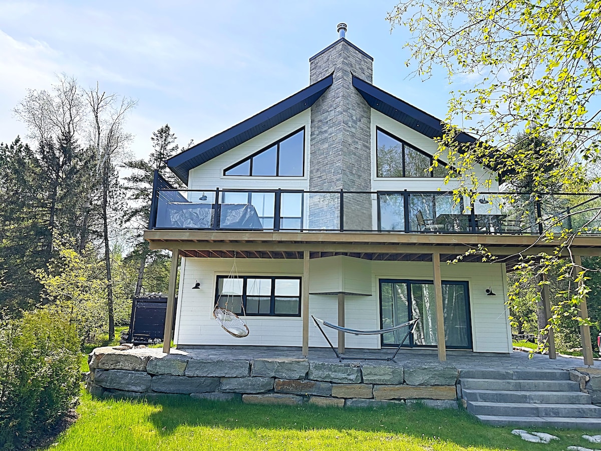 Profitez de ce chalet luxueux à l'architecture moderne sur une péninsule privée à 1h10 d'Ottawa. Admirez la vue époustouflante sur lac Hughes, où vous pourrez pêcher et vous baignez. Découvrez la magie des sentiers (motoneige), du ski (45 min), des feux de camp sous les étoiles, et des réveils sous les pins centenaires, ici l'eau et la nature vous entourent! C'est aussi le paradis des enfants : aire de sable, structure de jeu, balançoire. Fabriquez vous des souvenirs inoubliables. Citq 315118