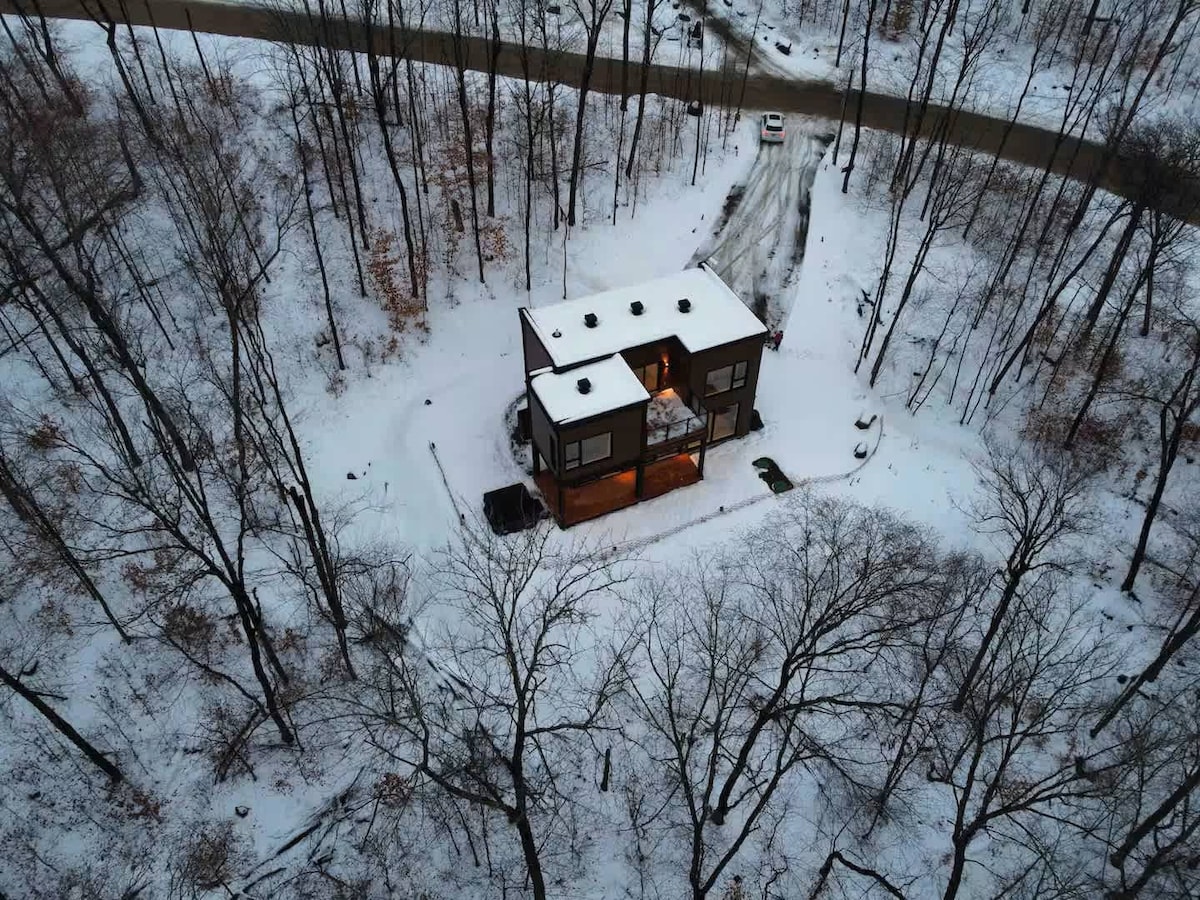 Détendez-vous dans ce chalet unique et tranquille au ❤️ de la nature🌲🏞️🌳🍁! Profitez du spa nordique (spa, sauna, piscine & douche-vapeur) avec vue pittoresque sur un paysage digne d'une carte postale! Profitez d'une immersion totale grâce au concept de cette petite maison de campagne vitrée sur 3 côtés, offrant une vue panoramique sur la forêt, les montagnes et un canyon. Réchauffez-vous devant un bon🔥 en relaxant dans notre fauteuil de massage. Aucun voisin visible = la paix totale!