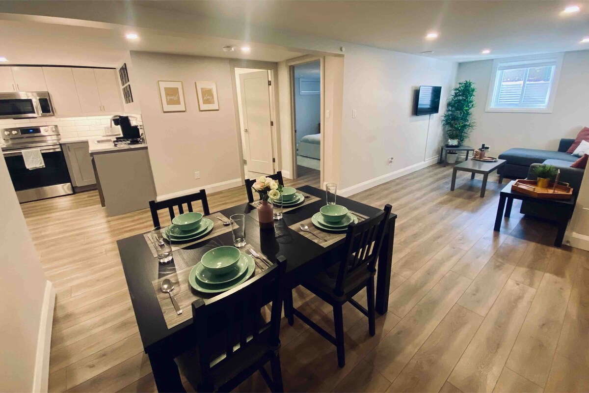Escape to this bright and cozy basement suite in Old Chelsea! Enjoy a comfy Casper memory foam mattress, fully-equipped kitchen, lightning-fast wifi, work station, and free parking. Nearby, you'll find cafes, restaurants, the Nordik Spa, and Gatineau Park for outdoor activities. Ottawa is just 10 minutes away for culture and entertainment. With air conditioning, laundry, and keyless entry, you'll have everything you need for a stress-free stay. Shared entrance and hosts occupy upper floors.