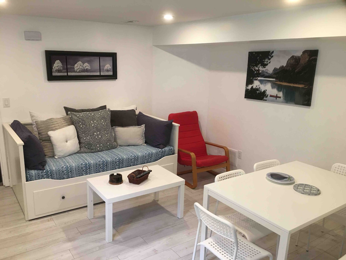 This cozy basement suite is located on a quiet street just minutes walk away from Gatineau Park. You will enjoy the entire suite in the basement, it is a bright and homey space with a private entrance through a lovely backyard. Unwind in a comfortable bedroom, private bathroom, cozy living room with sofa-bed and a kitchenette (fridge, coffee, microwave, kettle, toaster ** no stove, no freezer). Have fun with the wide selection of board games for you to enjoy during your stay! CITQ#306481