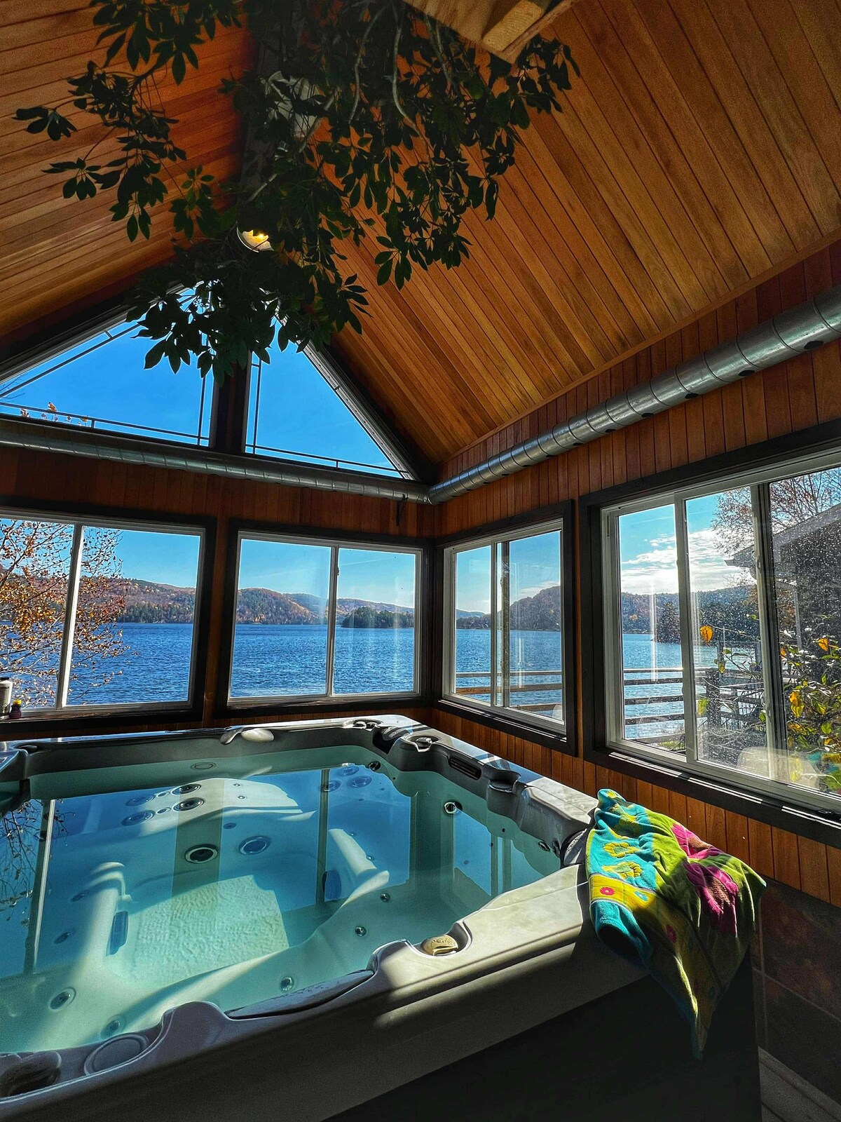 Enjoying this place is simply paradise. Calm, relaxing, you can enjoy your vacation in so many ways. From simply reading a book facing the lake on the patio, walking on the lake (when well frozen) or enjoying a quiet nap, swimming in the heated private pool or jacuzzi, it is simply paradise. Once you come and enjoy our place, you only want to come back again. There is always something to entertain your stay. Mention no of guest max 4 NO SURPRISE GUESTS Pool building is separate from apartment.