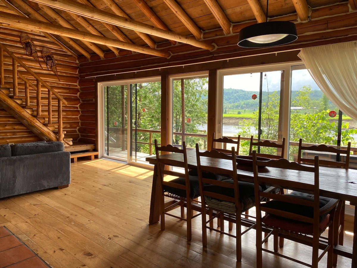 Le Refuge des Eaux Vives in La Macaza is a warm and inviting 3-bedroom (queen beds) chalet with 2 bathrooms. Enjoy a bright living space with large windows and a terrace offering spectacular views of the river rapids. Peace, nature, and comfort in the heart of the Hautes-Laurentides. Perfect for unwinding, observing wildlife, enjoying a morning coffee at sunrise, or sharing a campfire in the evening (bring your own wood).