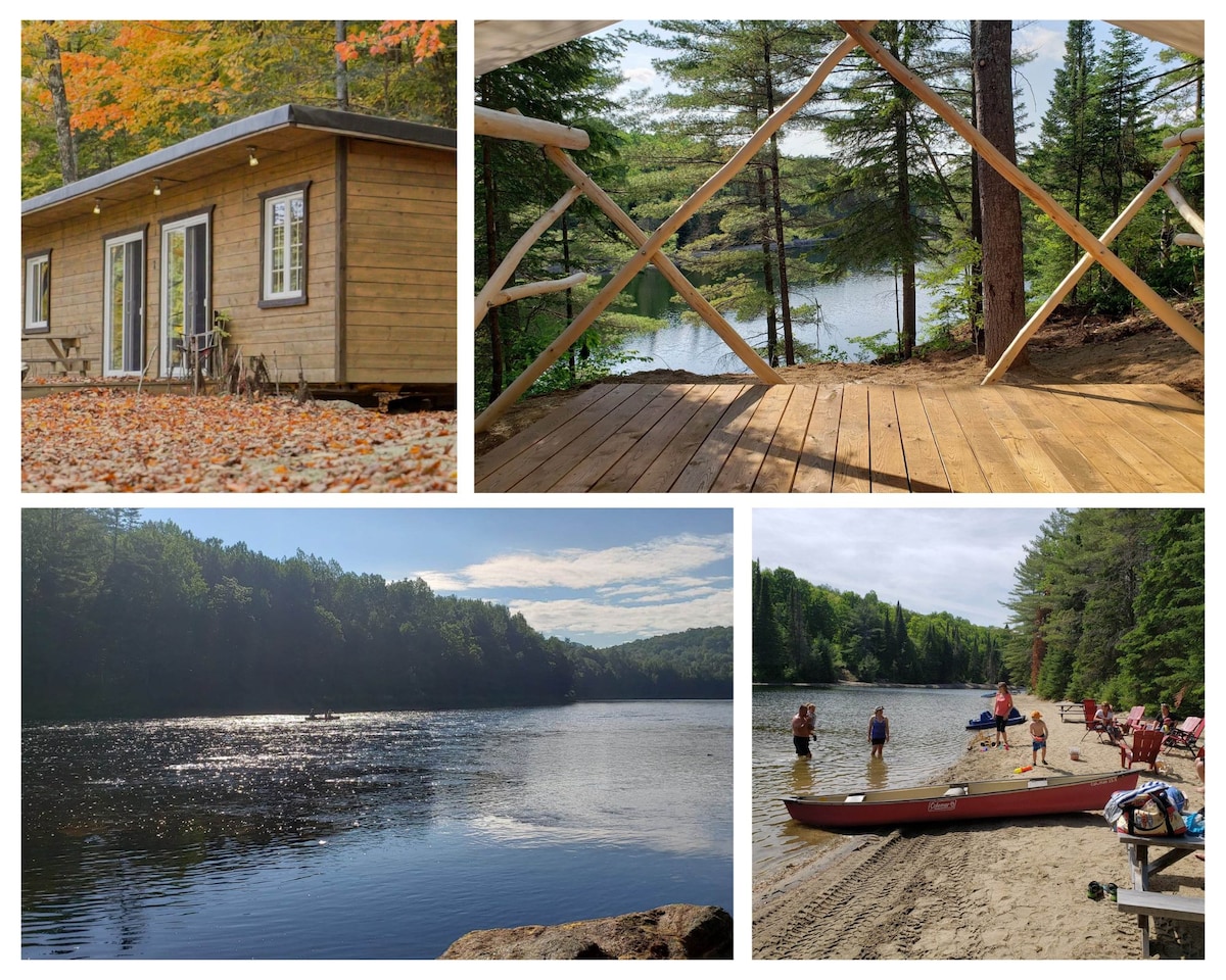 Cottage 3 chambres (1 toilette) pouvant recevoir jusqu'à 8 voyageurs. La 3ième chambre est un bunkie extérieur avec mezzanine pouvant accomoder 3 personnes. Situé à 5 mn de marche du lac Lemery. Coin tranquille, chemin privé. Idéal pour amoureux de la nature ou simplement pour déconnecter. Relaxez dans notre mini station spa (bain chaud extérieur, sauna chauffés au bois et cold plunge) (3-4 personnes - frais supplémentaires pour le bois)! 7 mn plage (Lac Simon) Montagnes noires 30 mn Parc OMega