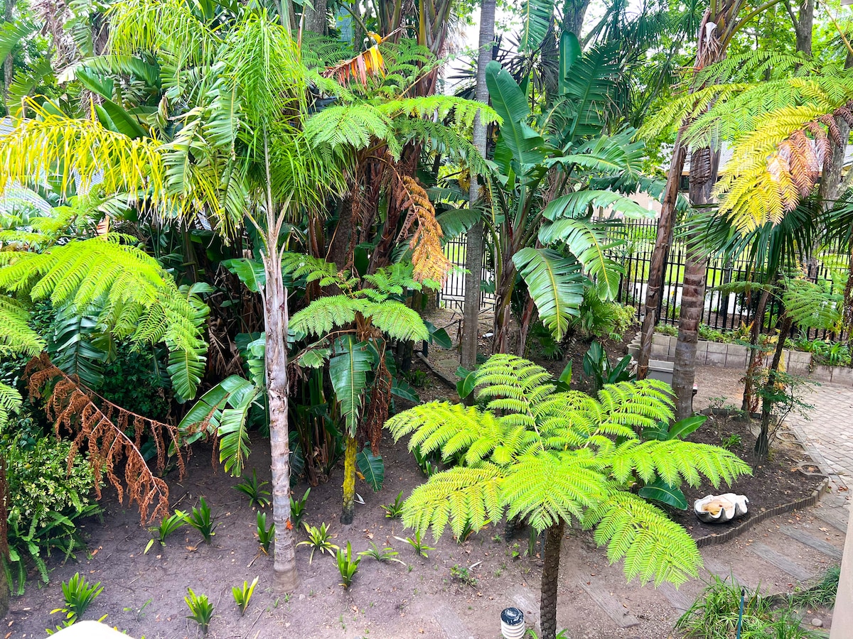 A beautiful small private ground-floor flat for two, with a kitchen & bathroom situated on a quiet tree-lined street of a well positioned leafy suburb . Sharing a property with our family’s Georgian-style house, the patio looks out onto sub-tropical gardens, a pool and braai area! Entrance and secure parking within the gate. If you require a larger space (lounge etc), search our Upper Flat! Airport, Town Amenities, Parks, Golf Courses, Forests are all close also highway to the beaches.